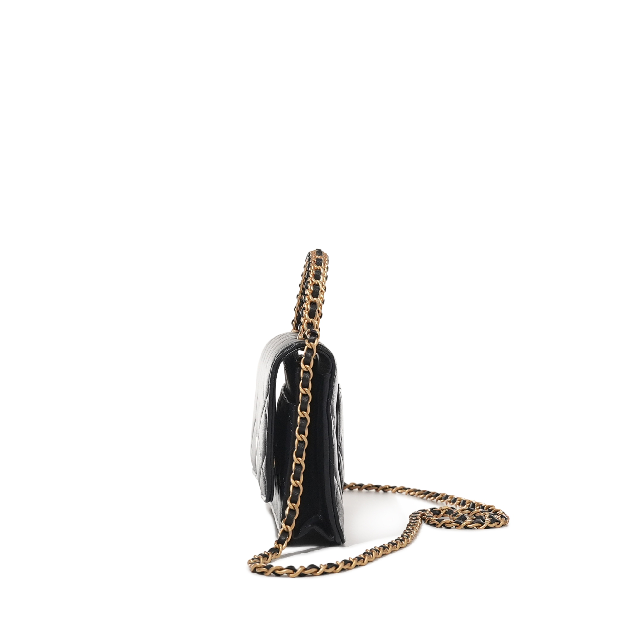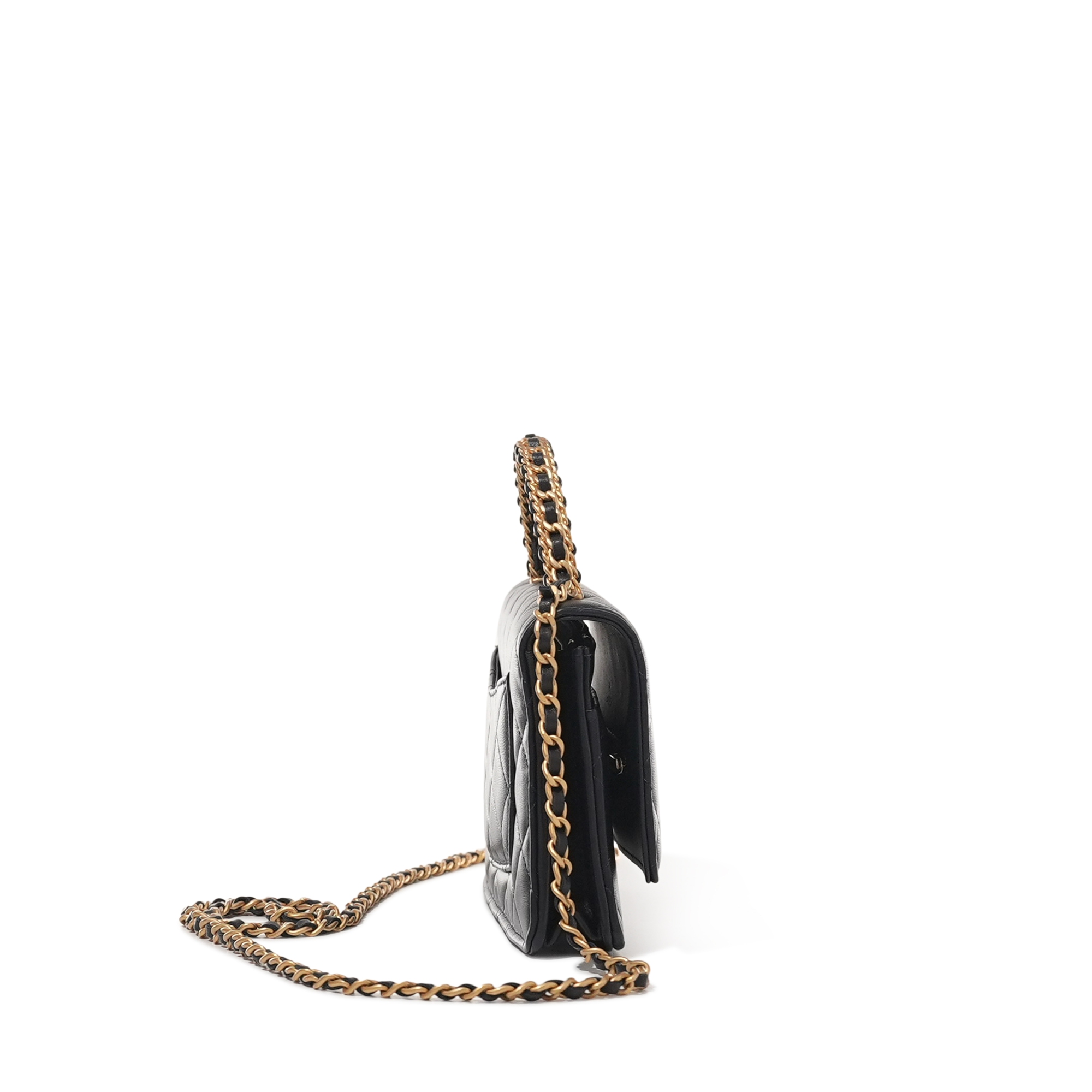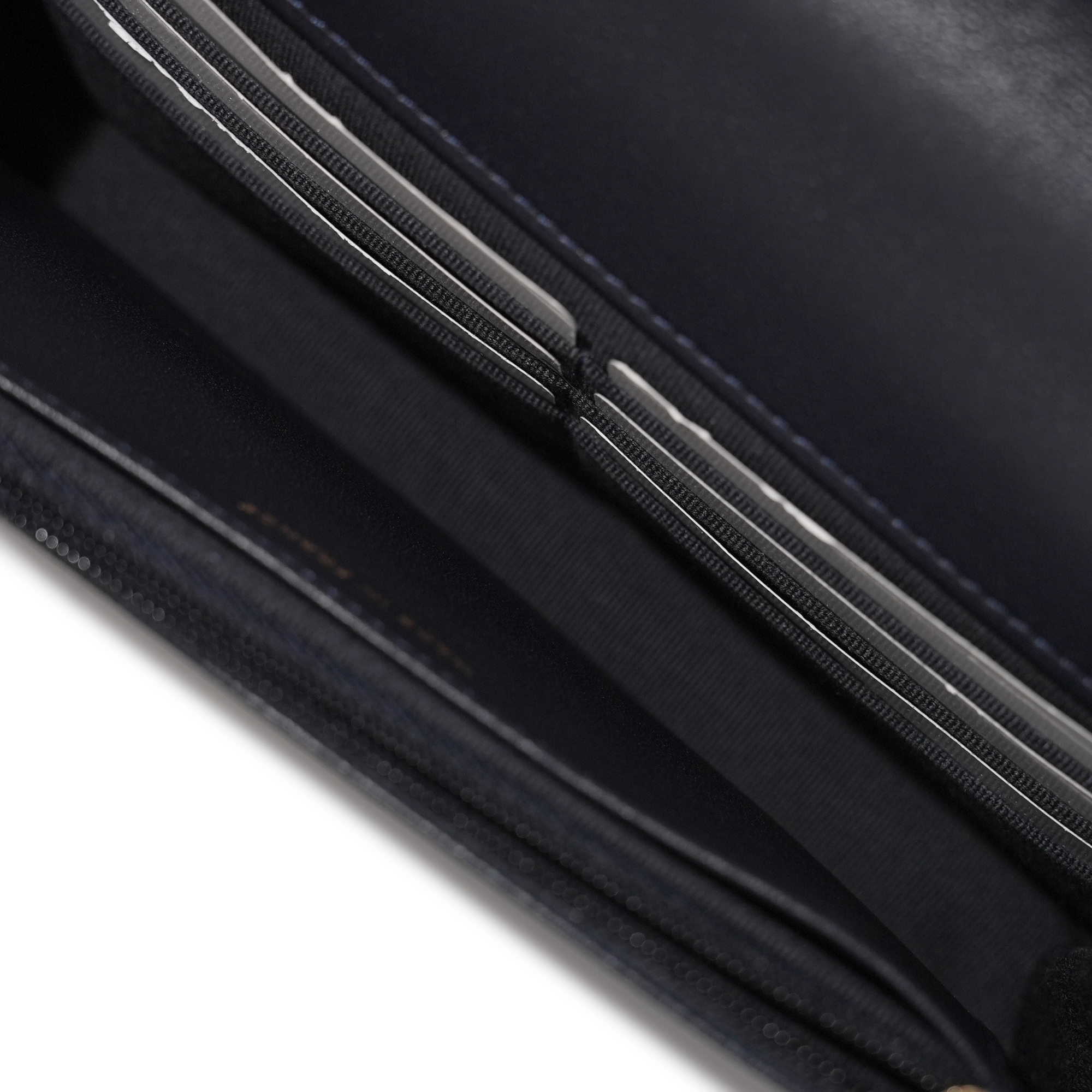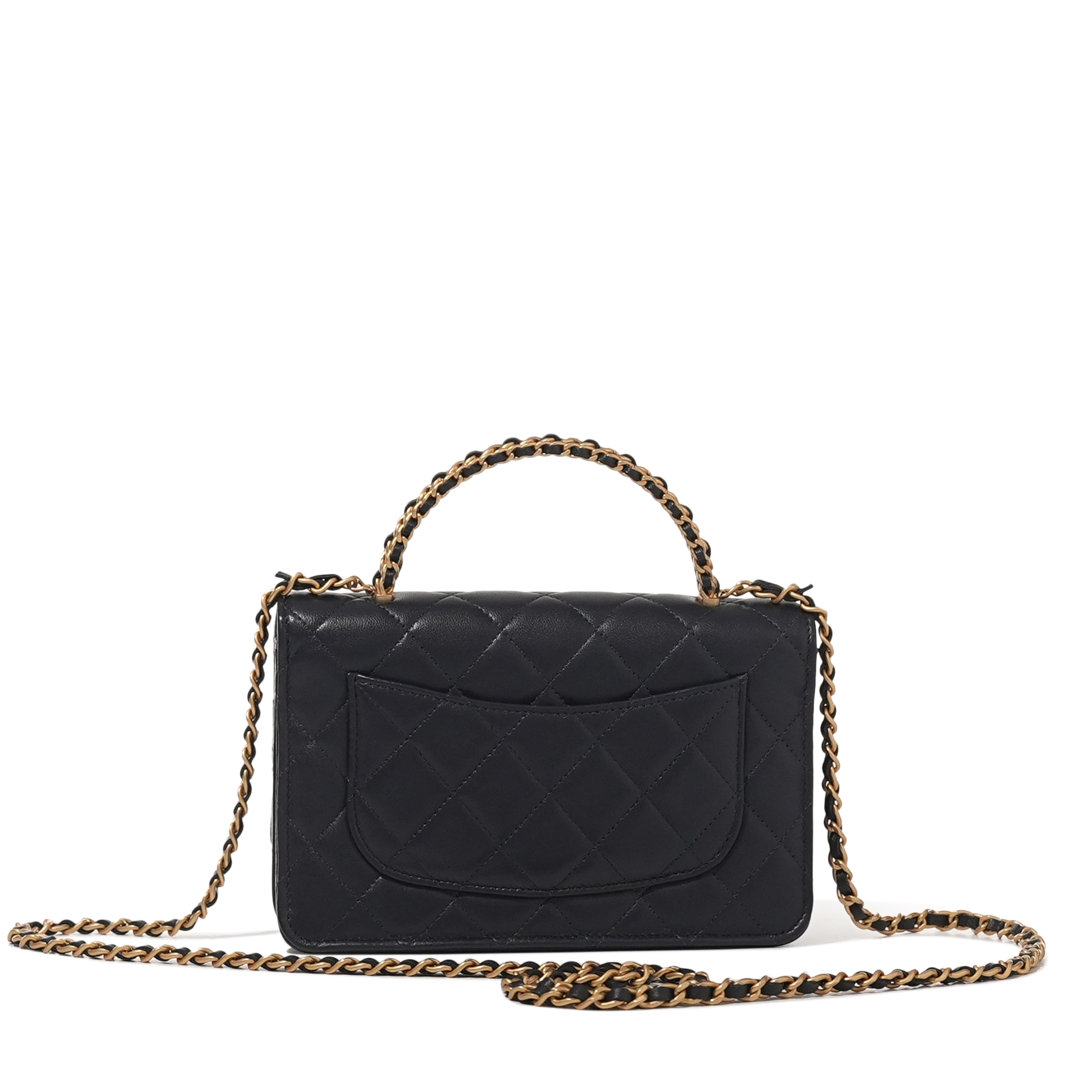 Chanel Navy Quilted Lambskin Top Handle Wallet on Chain Brushed Gold Hardware, 2022The interior is lined with tonal textile materialIncludes dust bag and boxThis item is final sale and not eligible for return
