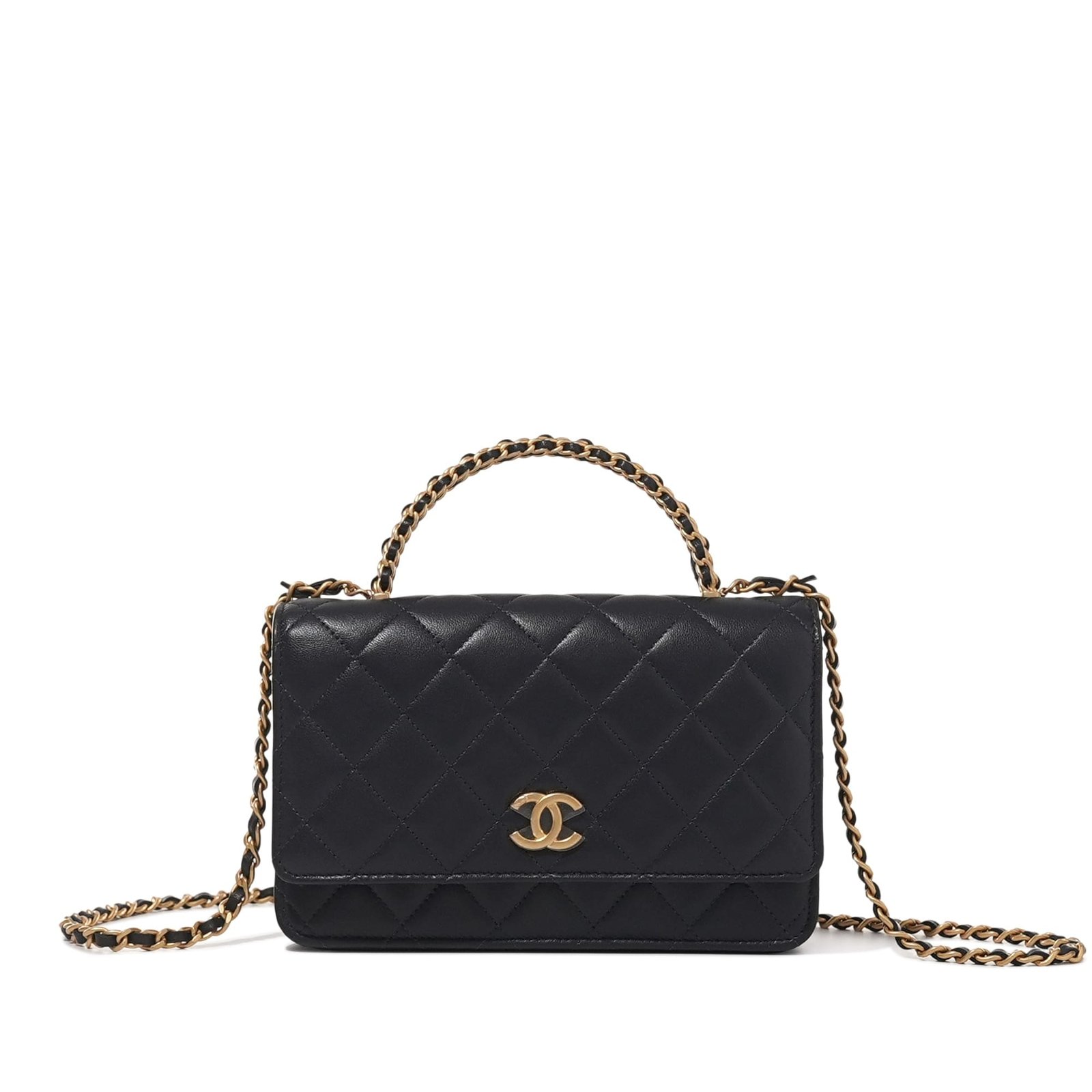 Navy Quilted Lambskin Top Handle Wallet on Chain Brushed Gold Hardware, 2022