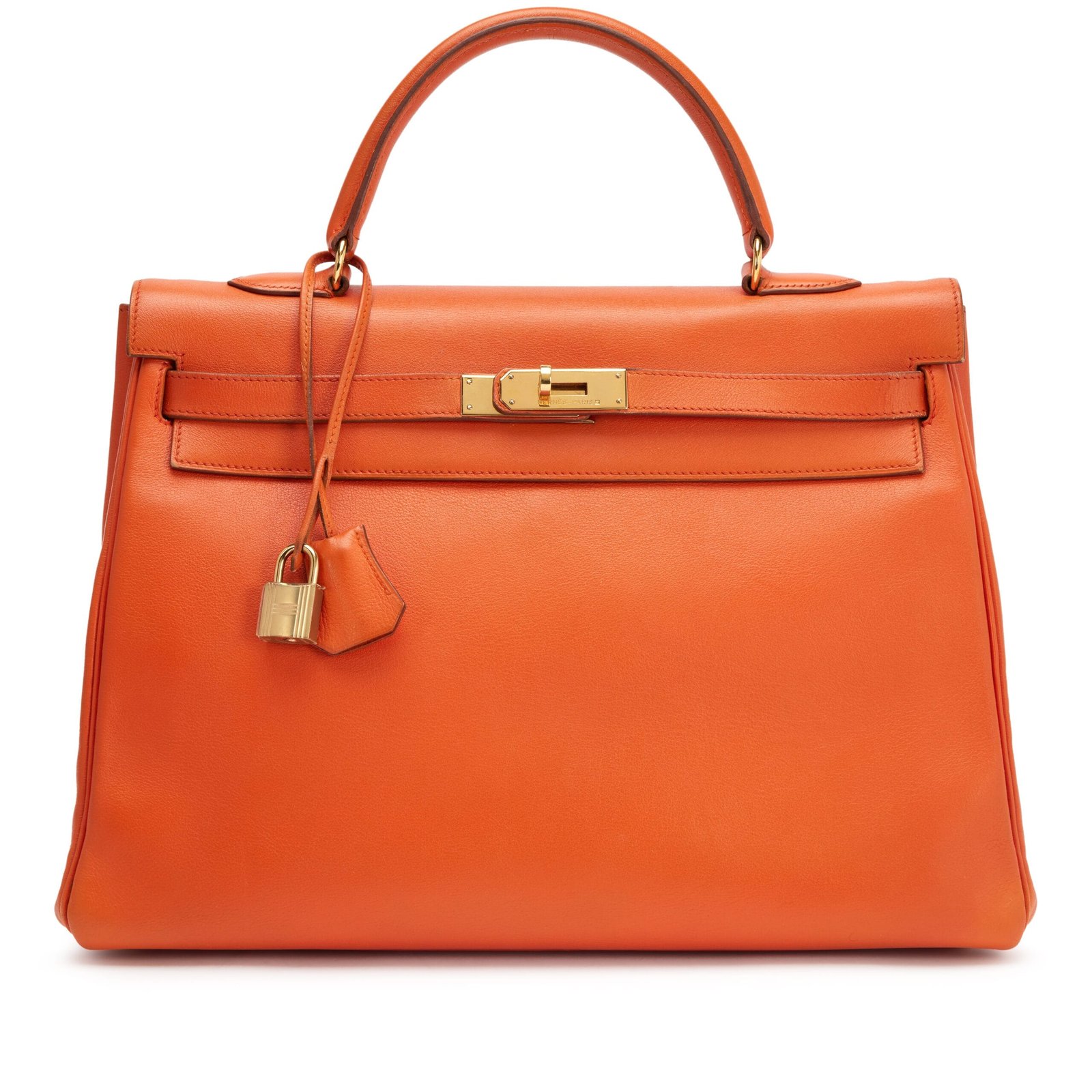 Hermès Orange H Gulliver Kelly 35 Gold Hardware, 1994