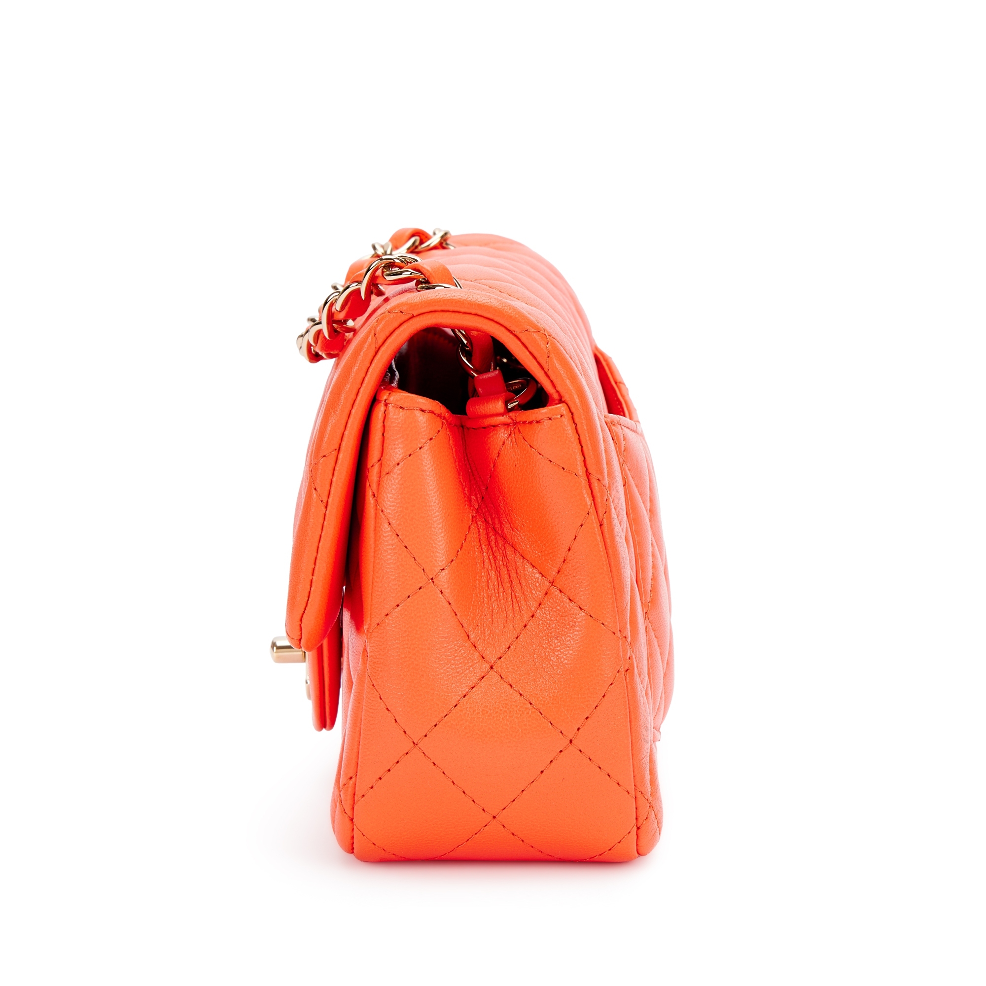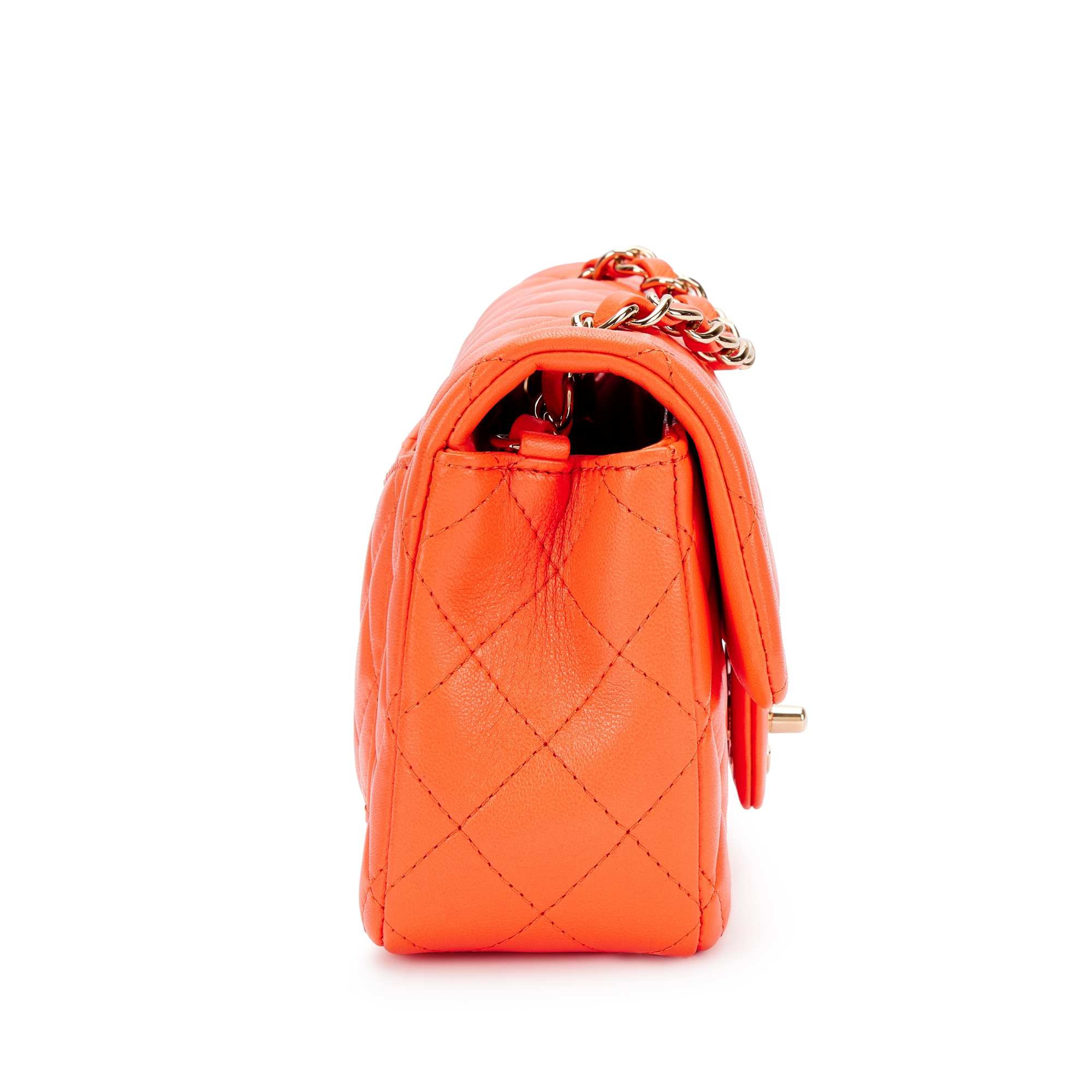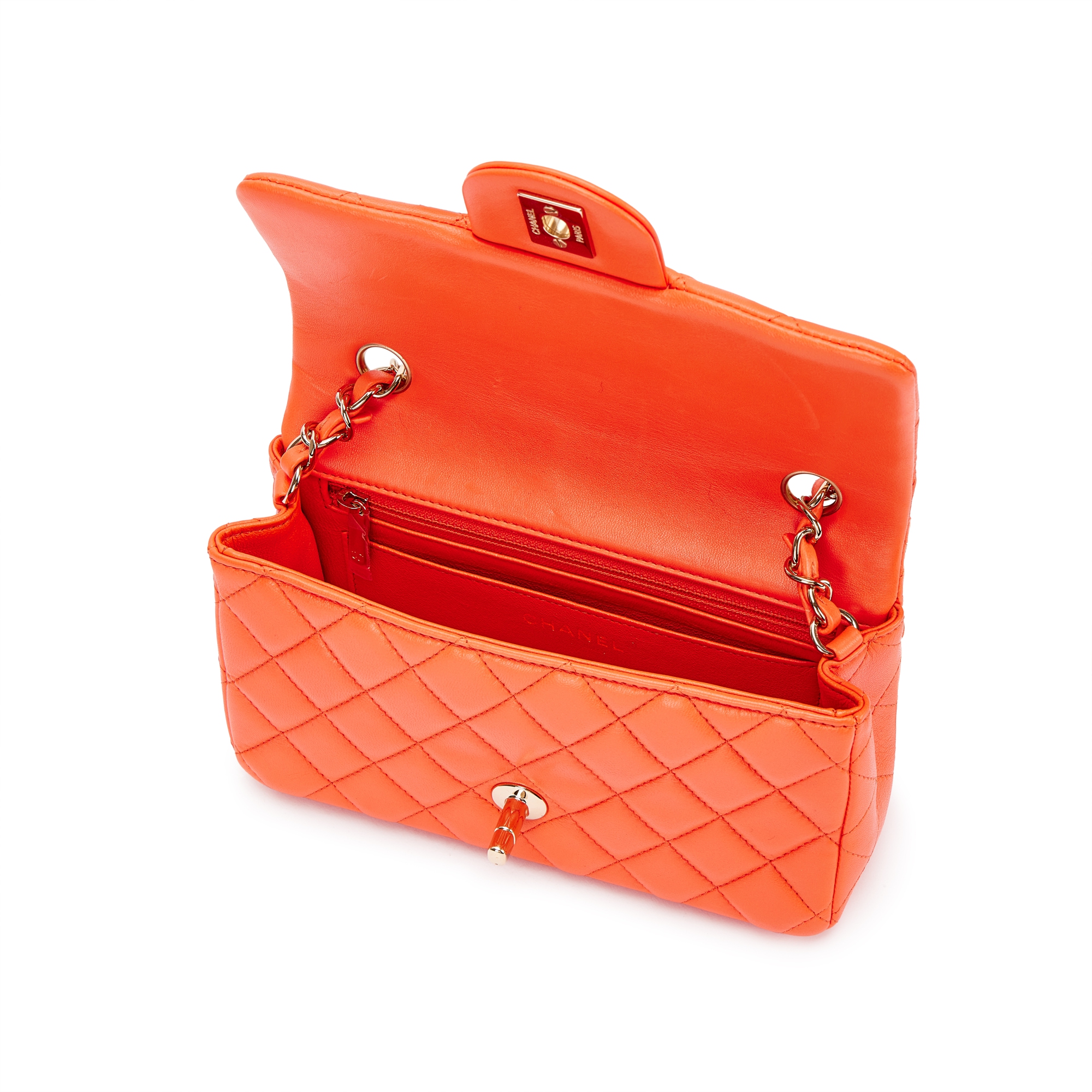 Chanel Orange Quilted Lambskin Flap Bag Silver Hardware, 2020The interior is lined with tonal leatherIncludes felt, authenticity card and dust bag This item is final sale and not eligible for return