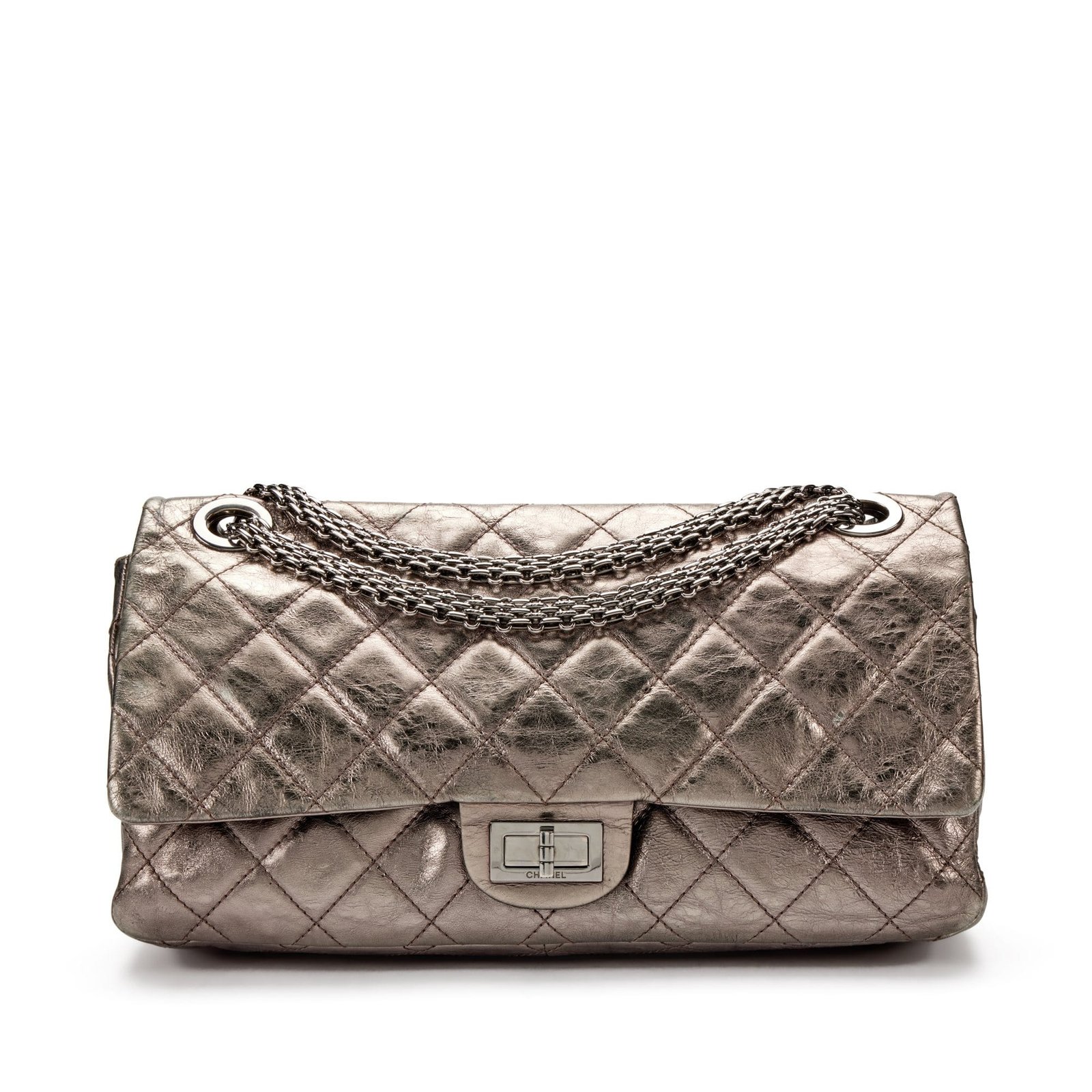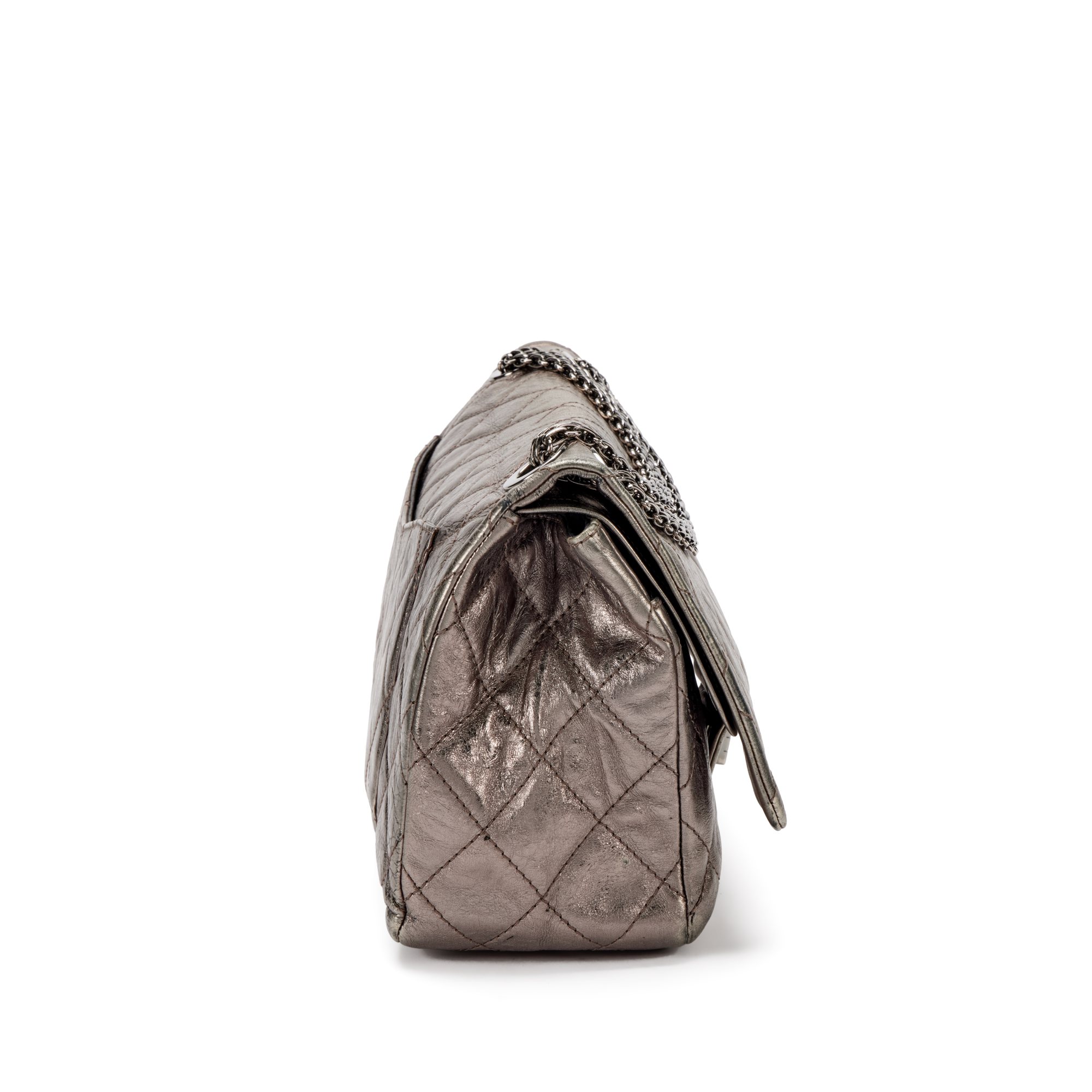 Chanel Pewter Quilted Aged Calfskin 2.55 Reissue 228 Double Flap Ruthenium Hardware, 2008-2009