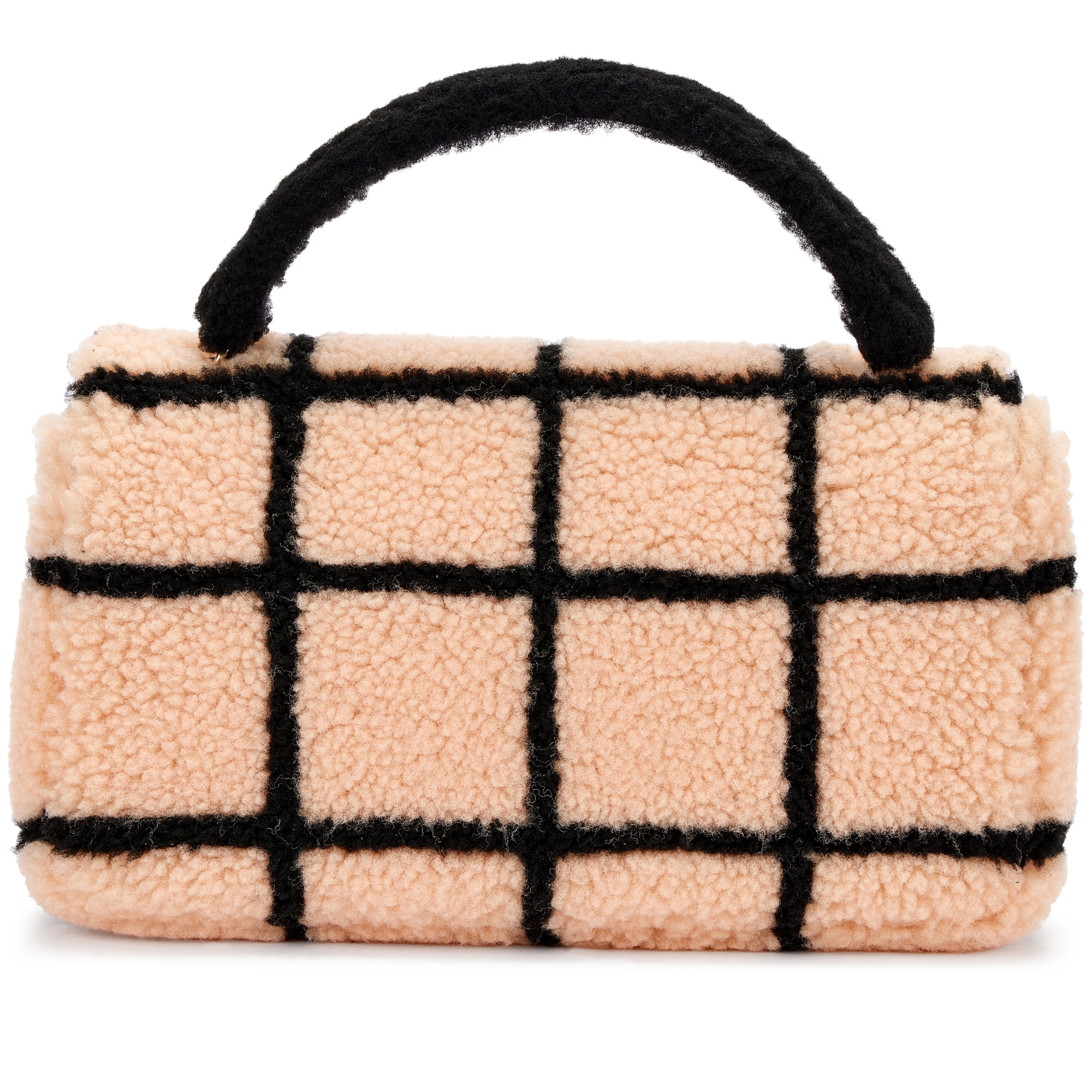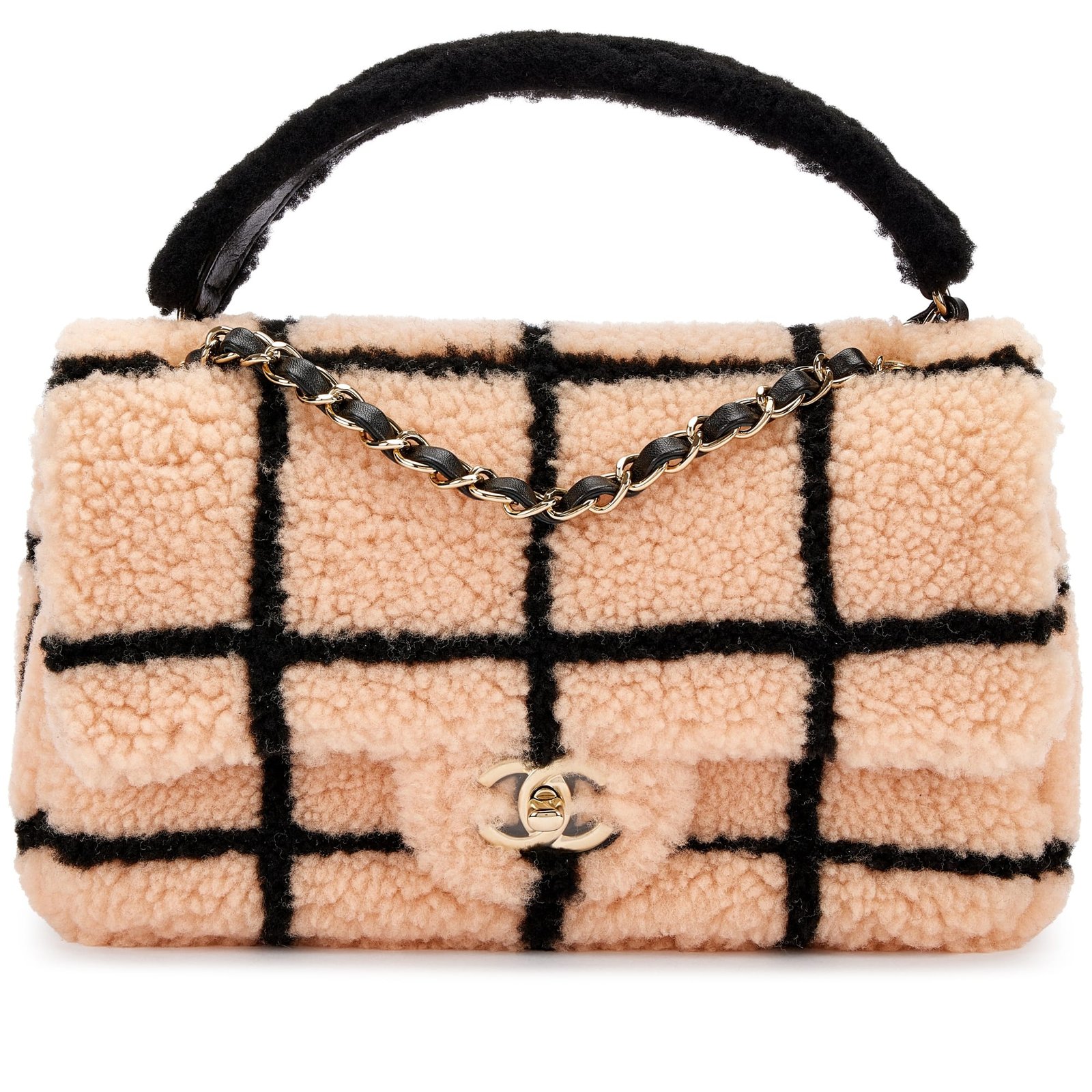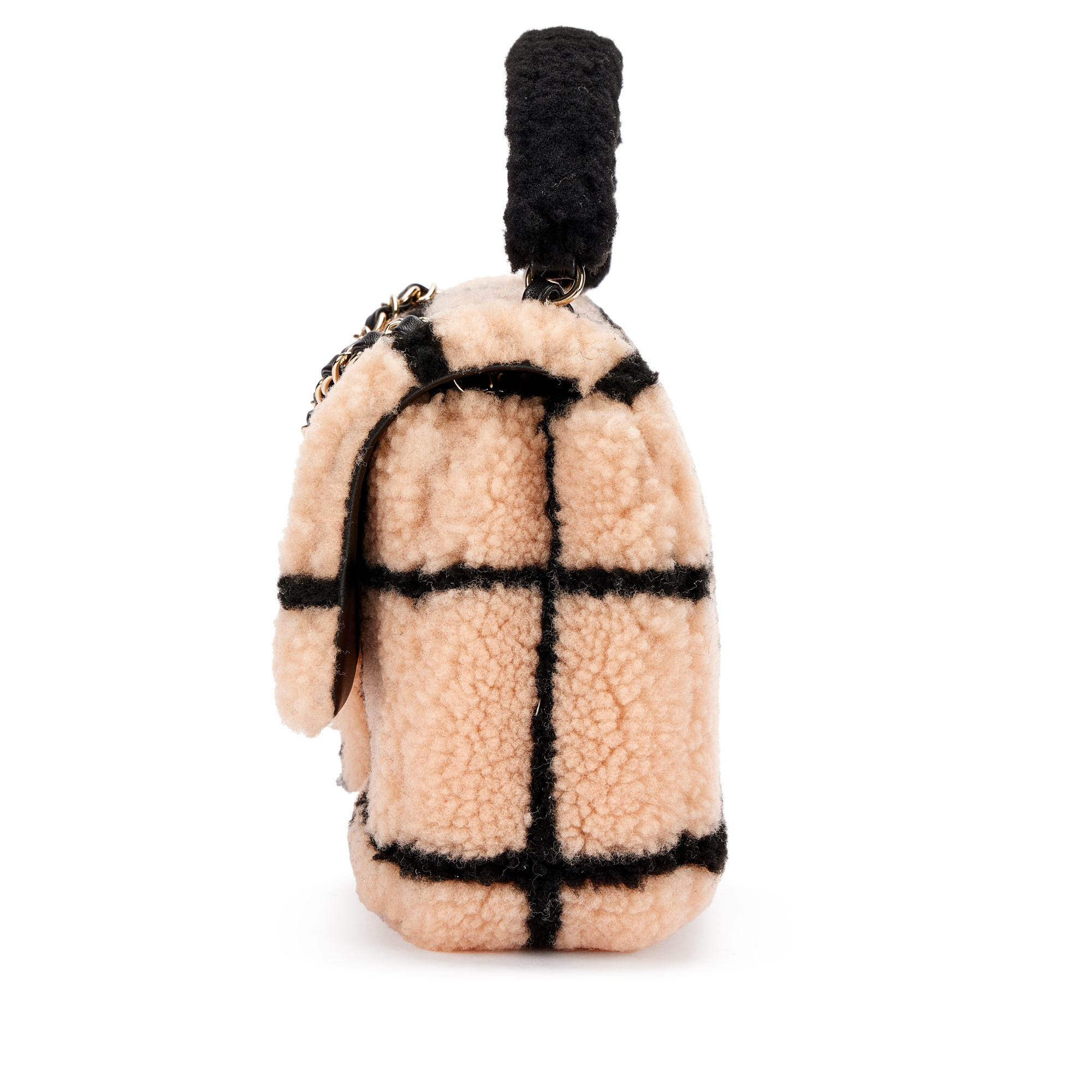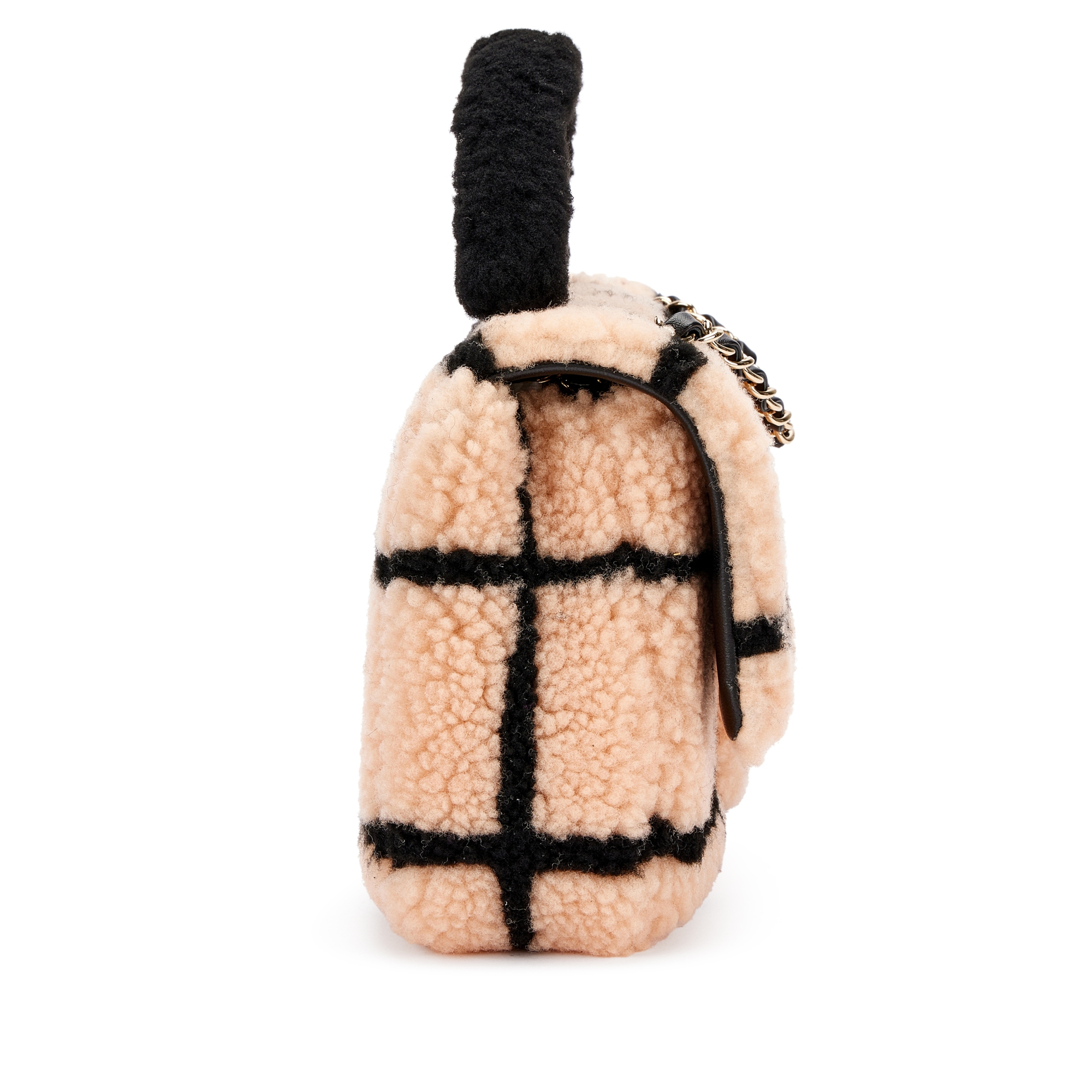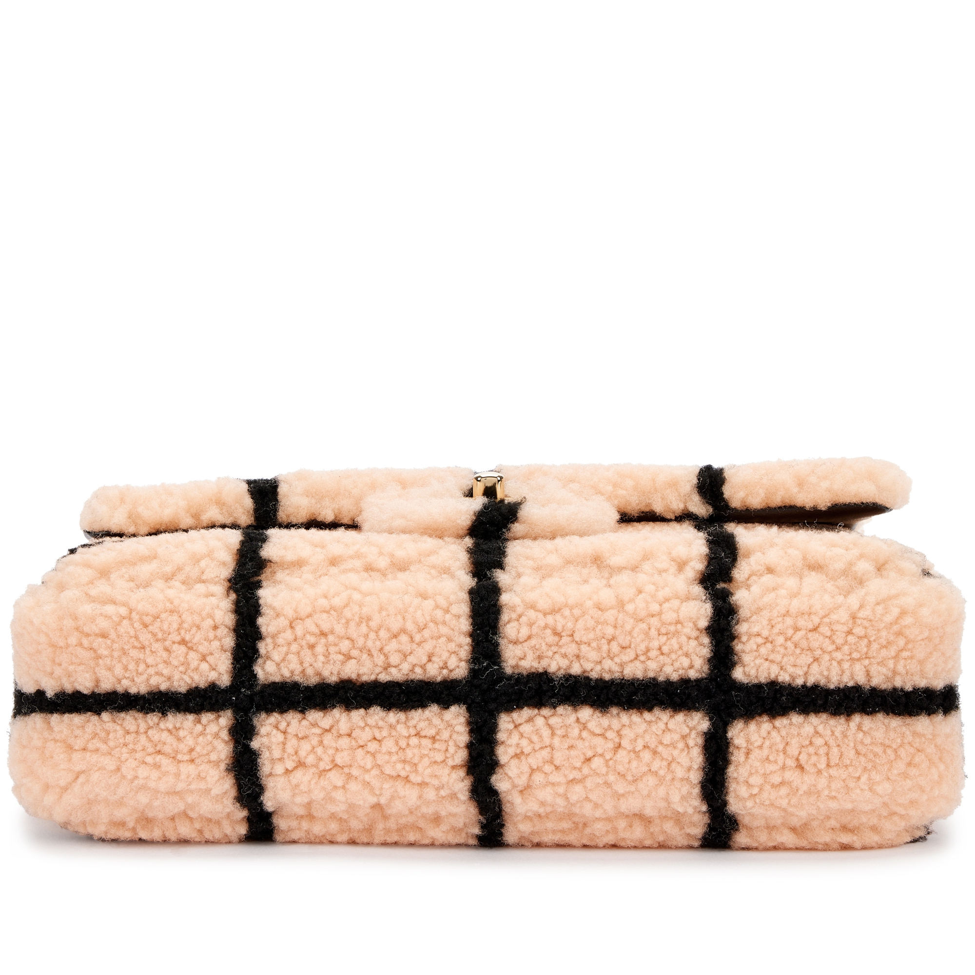 Chanel Pink and Black Shearling Flap Bag Pale Gold HardwareThe interior is lined with Black leatherIncludes felt and dust bagThis item is final sale and not eligible for return