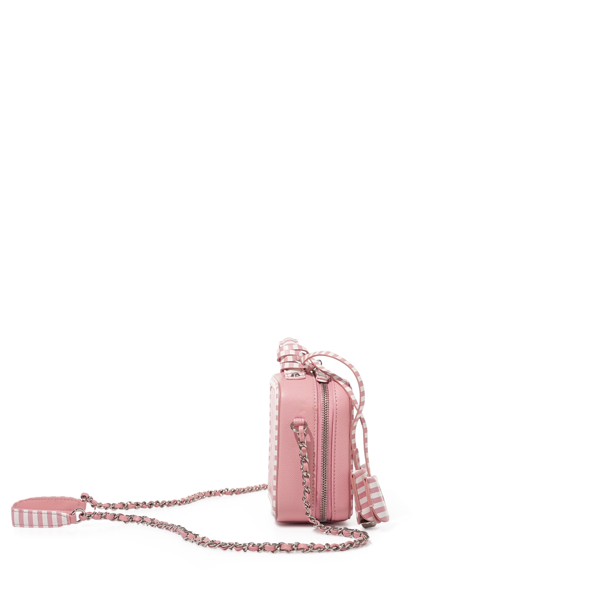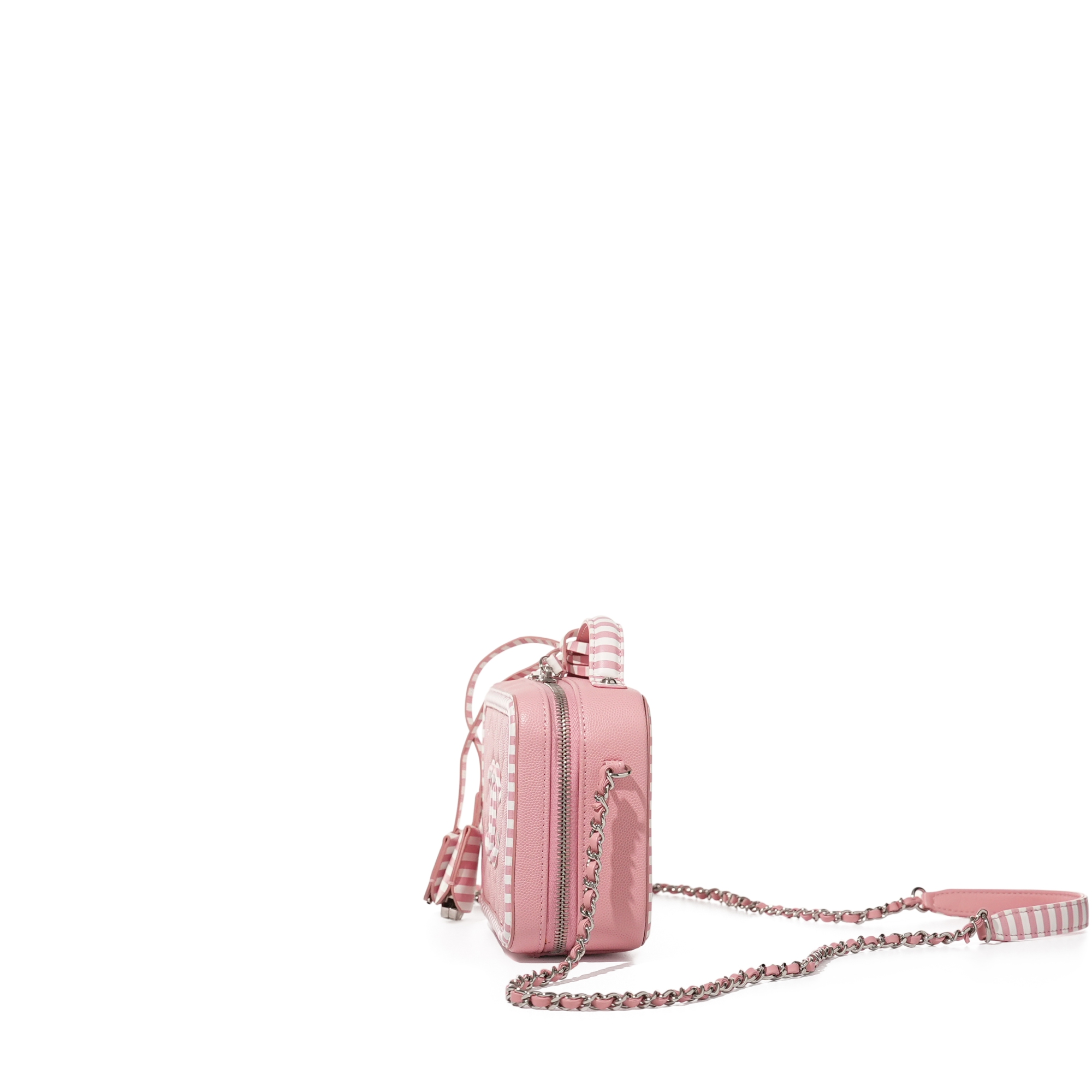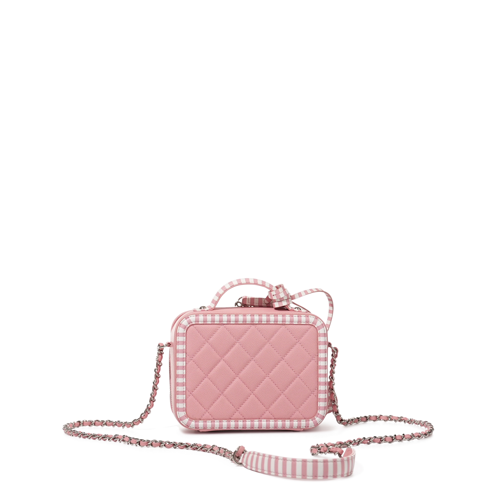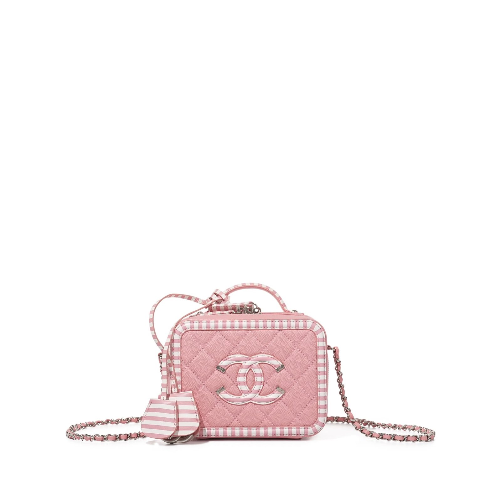 Chanel Pink and White Quilted Caviar Small CC Filigree Vanity Case Silver Hardware, 2019The interior is lined with Pink leatherIncludes lock, keys and dust bagThis item is final sale and not eligible for return