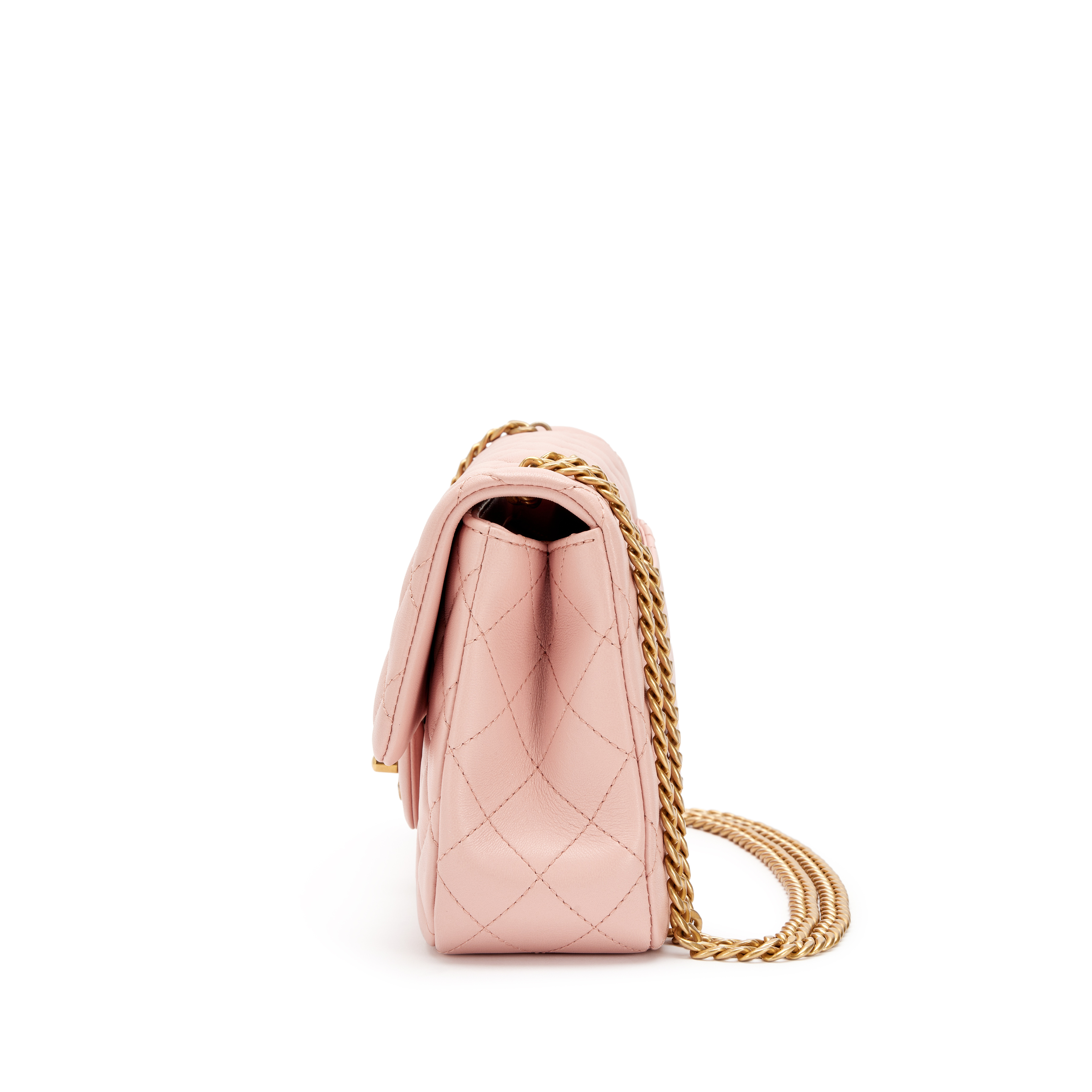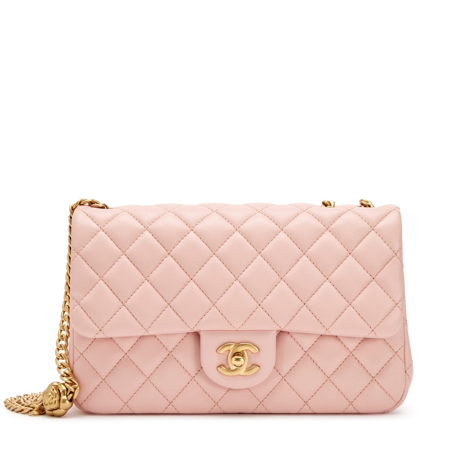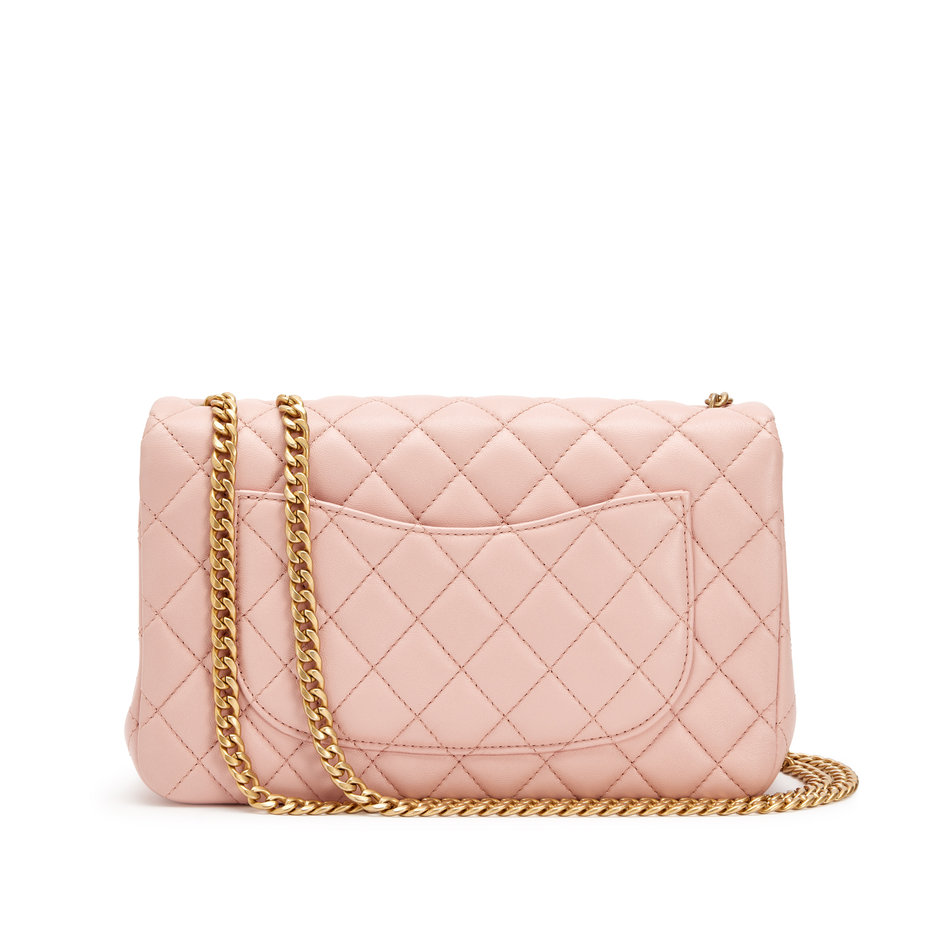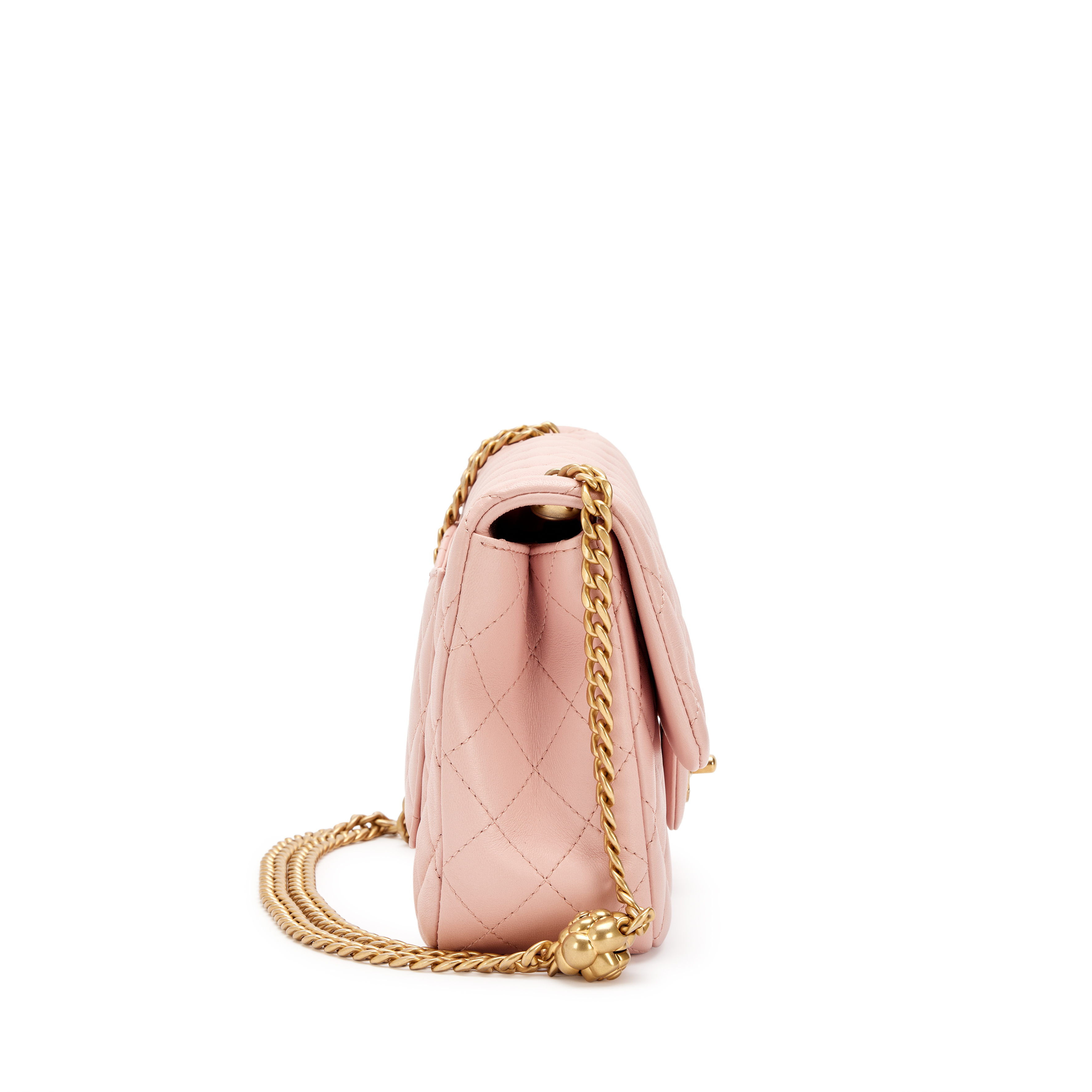 Chanel Pink Quilted Lambskin Camellia Chain Single Flap Bag Aged Gold Hardware, 2023
