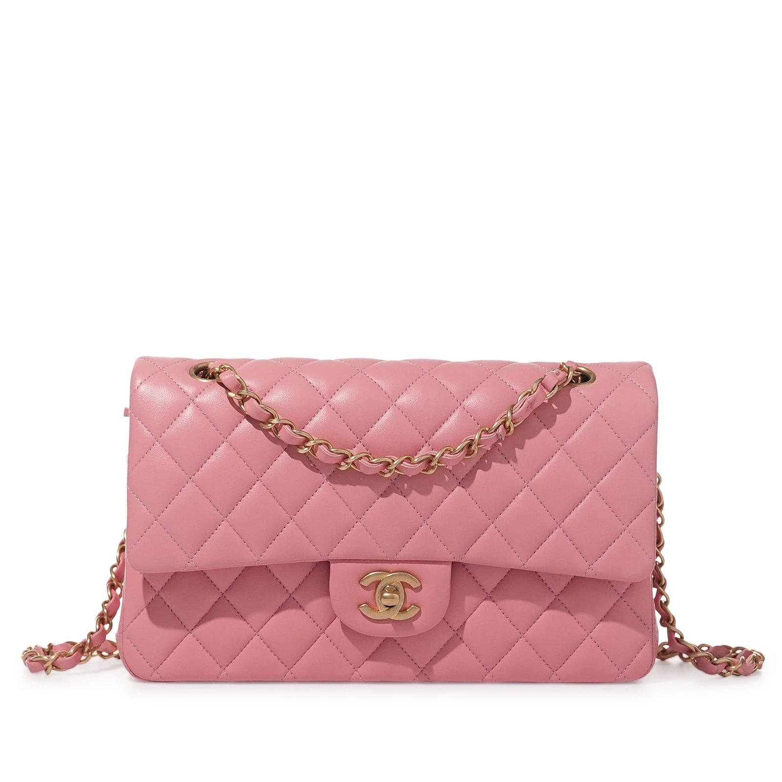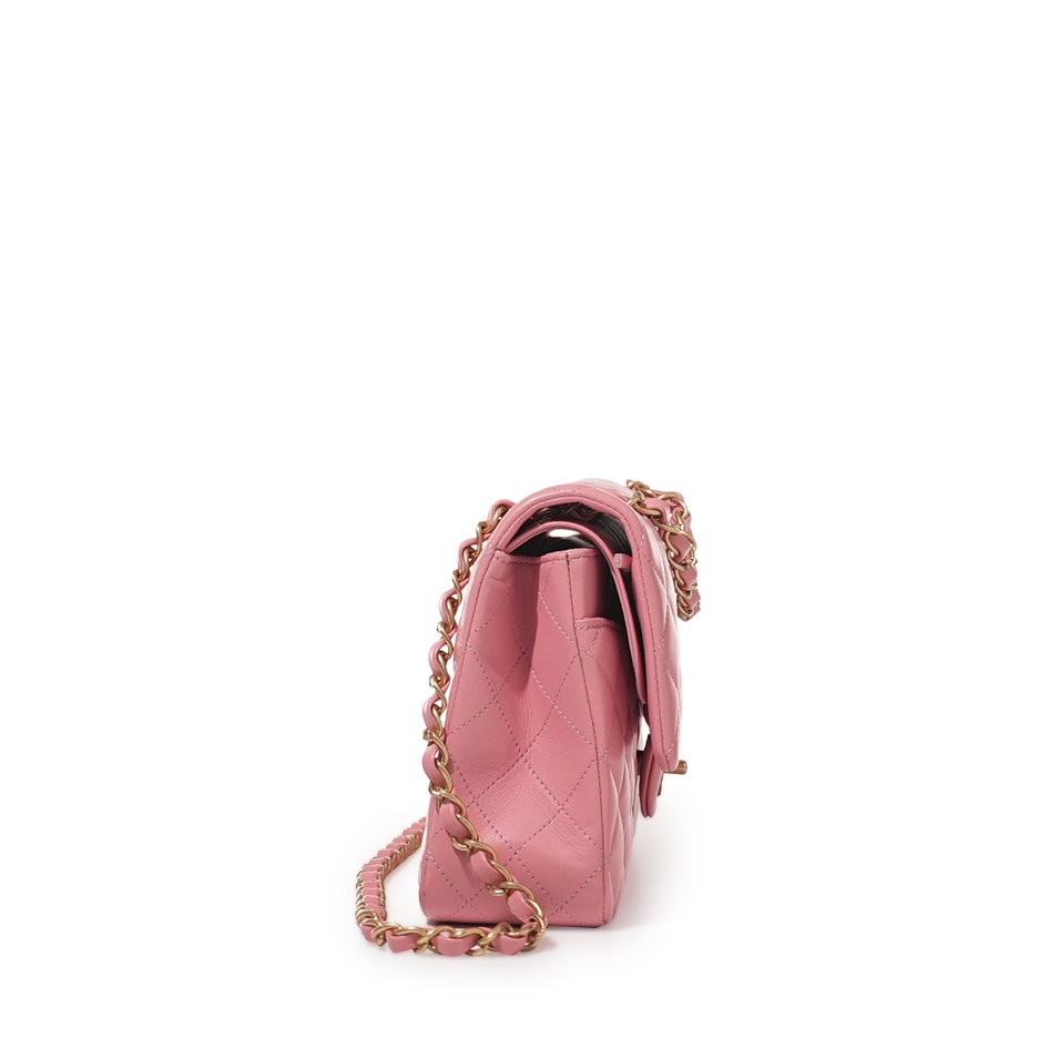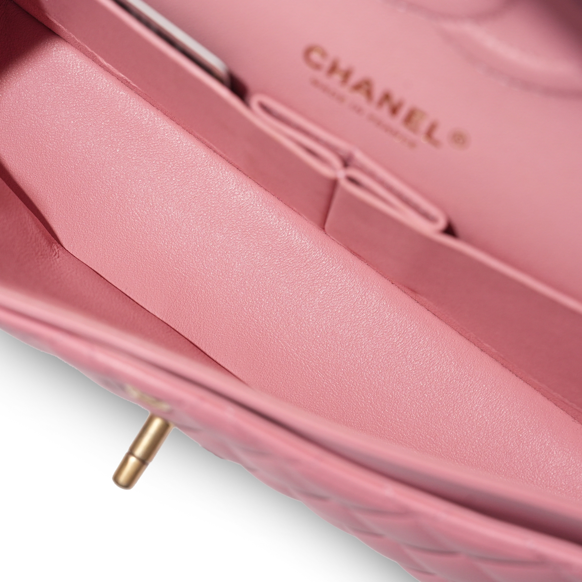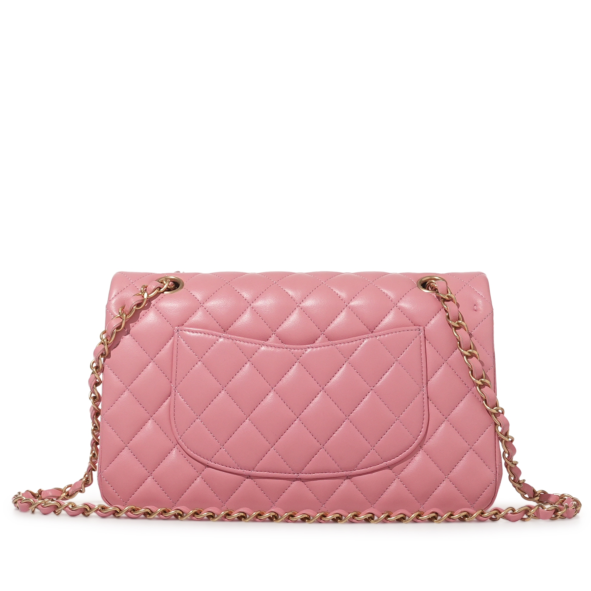 Chanel Pink Quilted Lambskin Classic Double Flap Bag Aged Gold Hardware, 2019The interior is lined with tonal leatherIncludes authenticity card, dust bag and boxThis item is final sale and not eligible for return