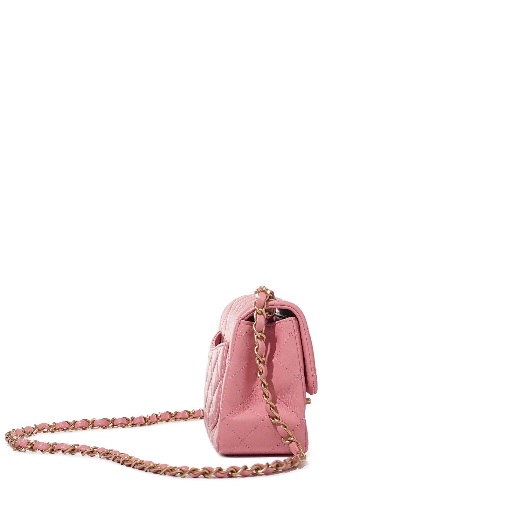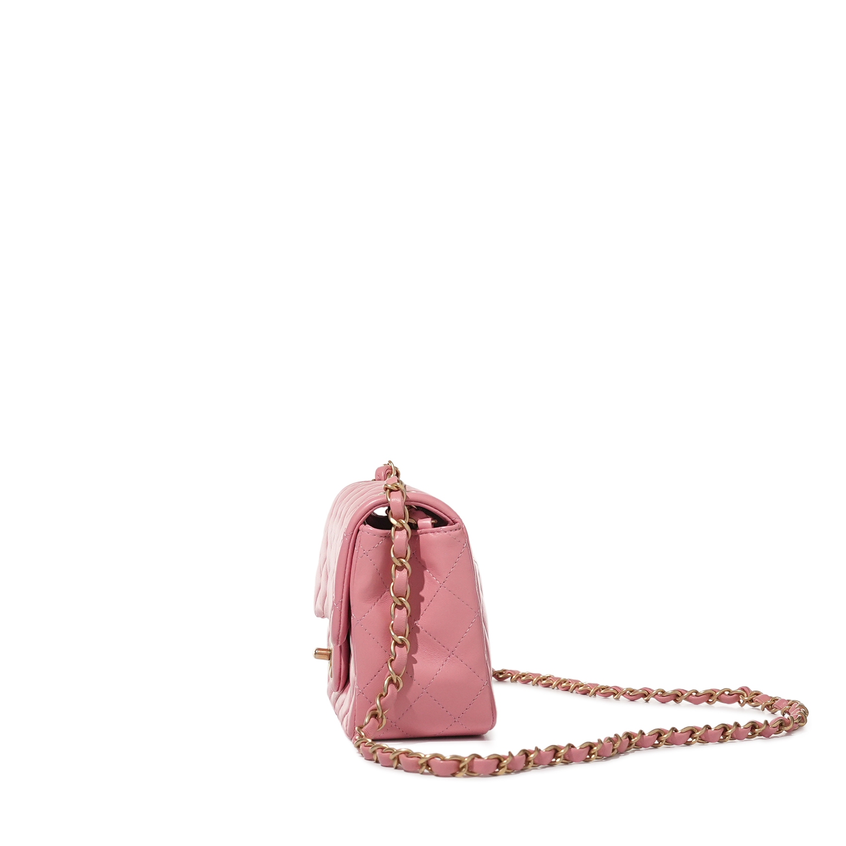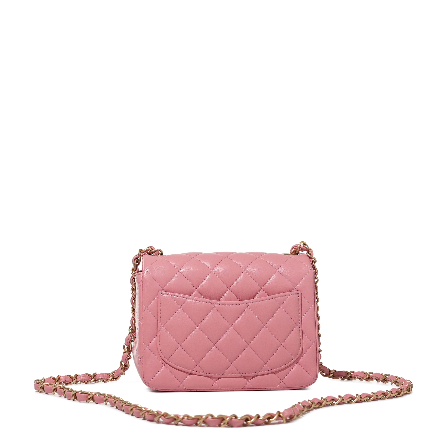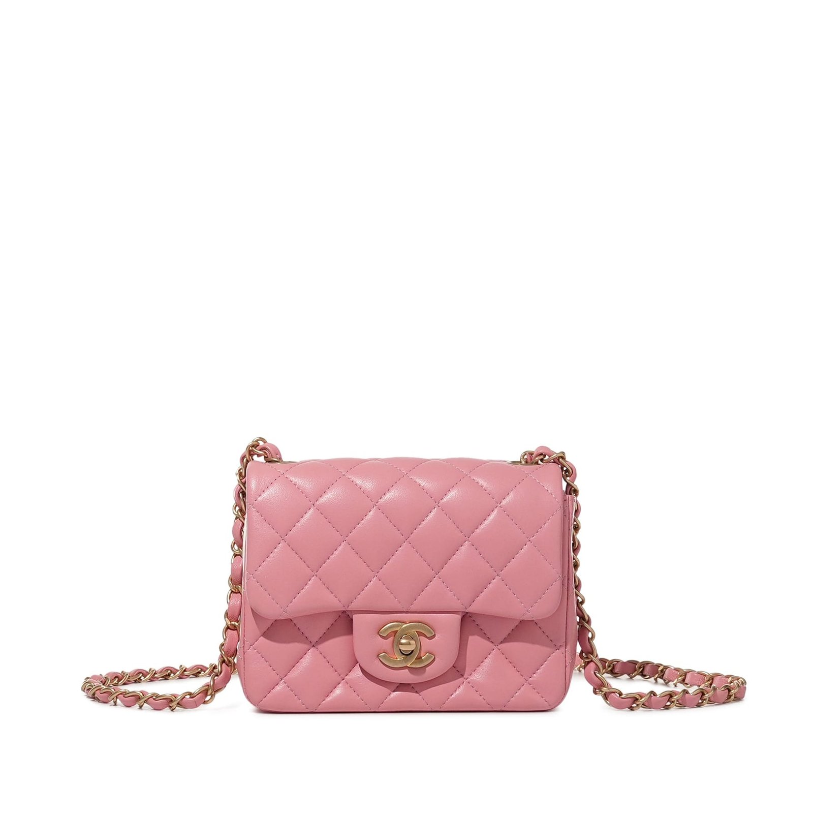 Chanel Pink Quilted Lambskin Mini Square Flap Bag Aged Gold Hardware, 2019The interior is lined with tonal leatherIncludes authenticity card, dust bag and boxThis item is final sale and not eligible for return