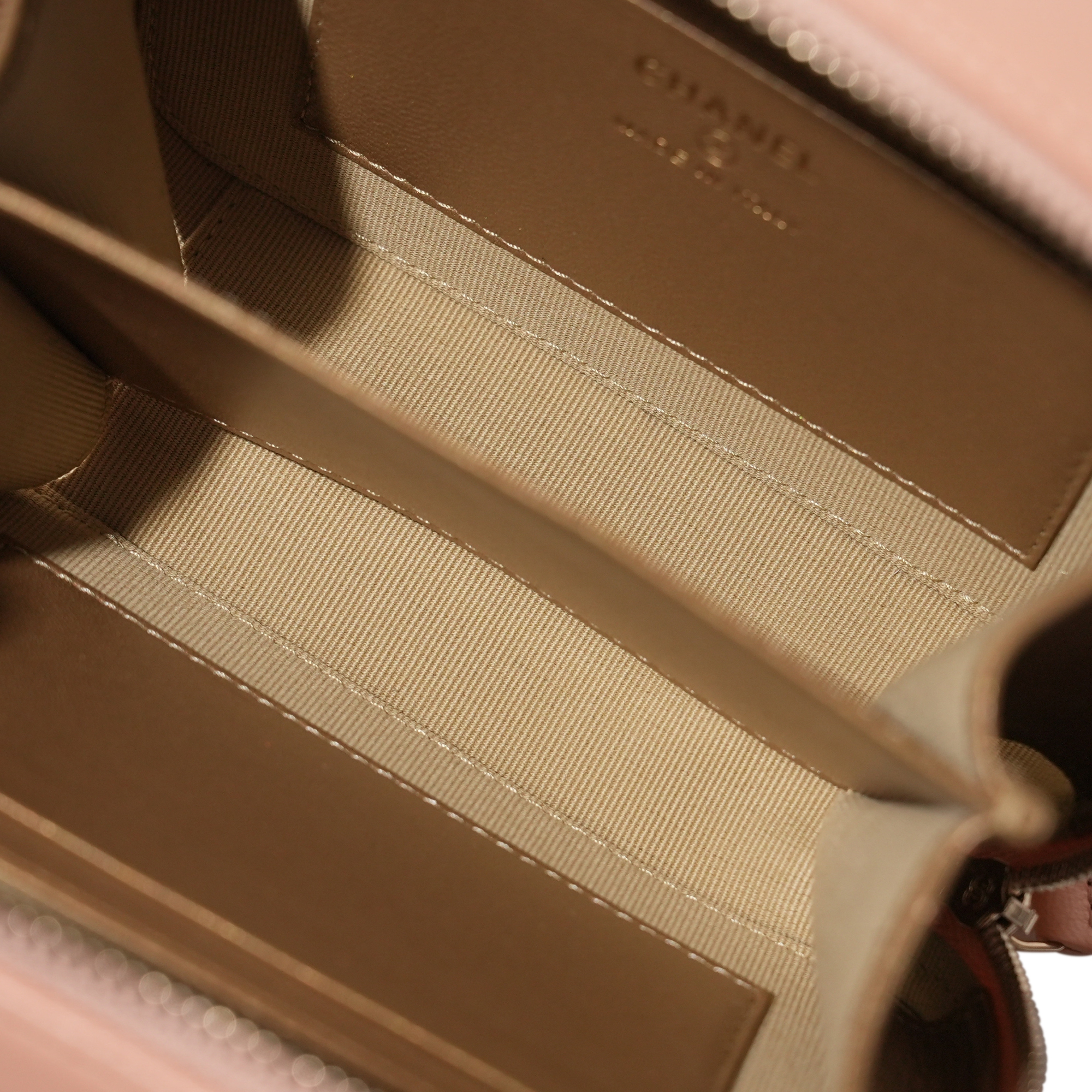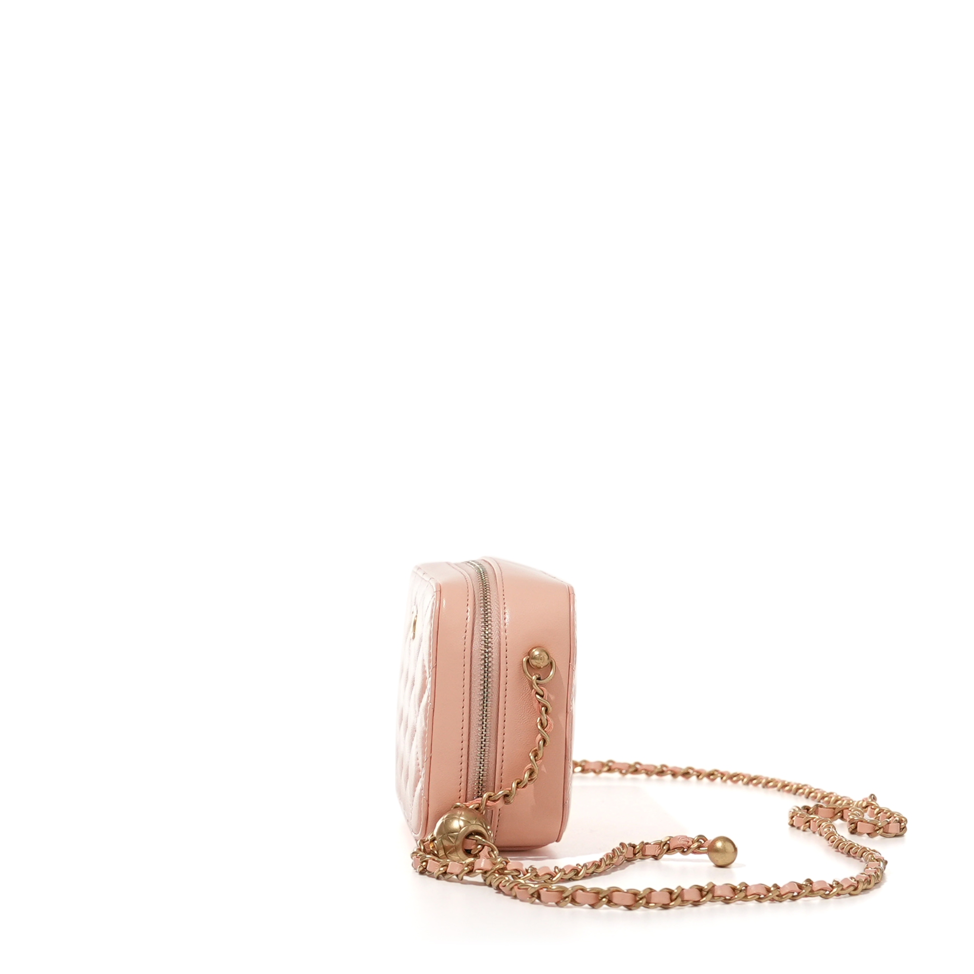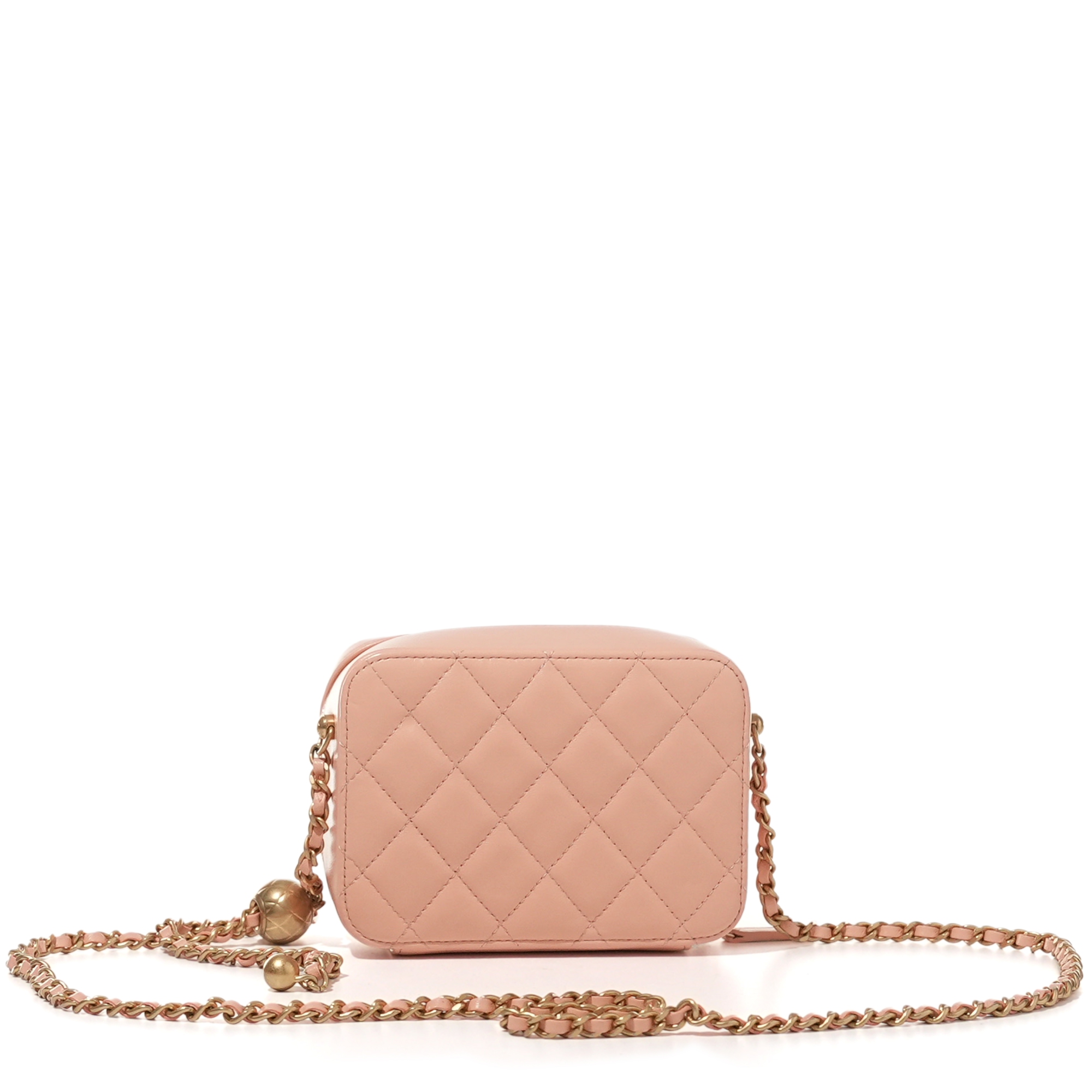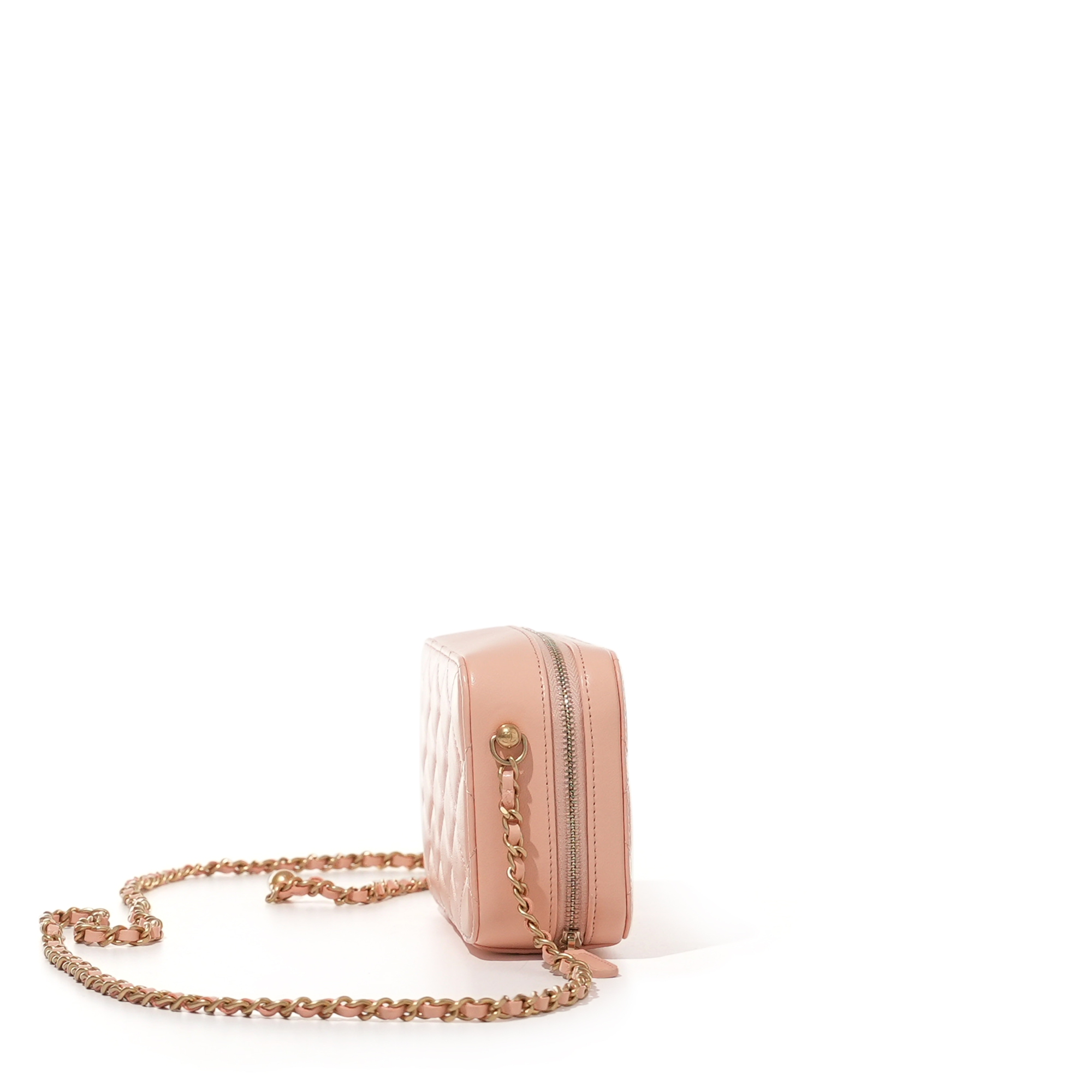 Pink Quilted Lambskin Pearl Crush Camera Case Brushed Gold Hardware, 2021