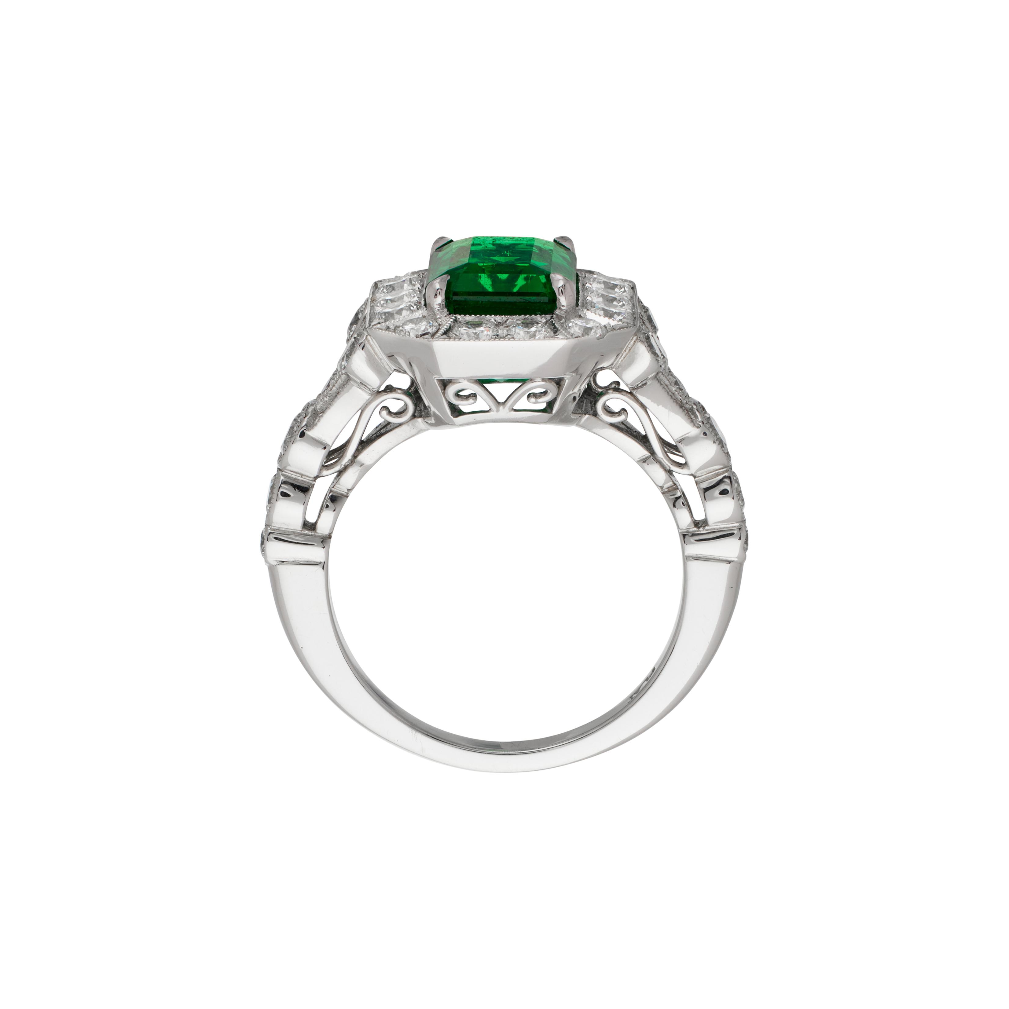 Platinum, 3.86ct Zambian Emerald and Diamond Ring
