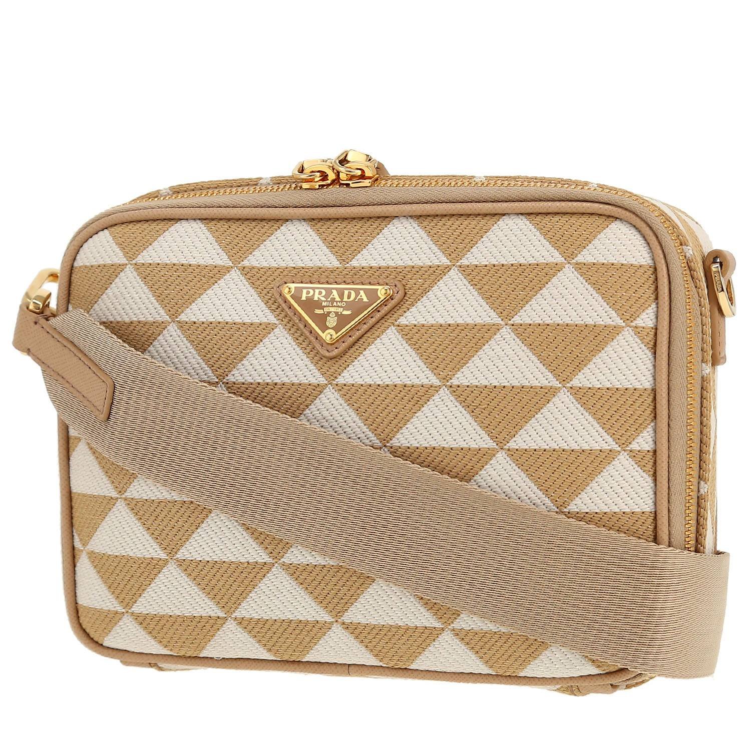 Prada Symbole shoulder bag in beige and white logo canvas