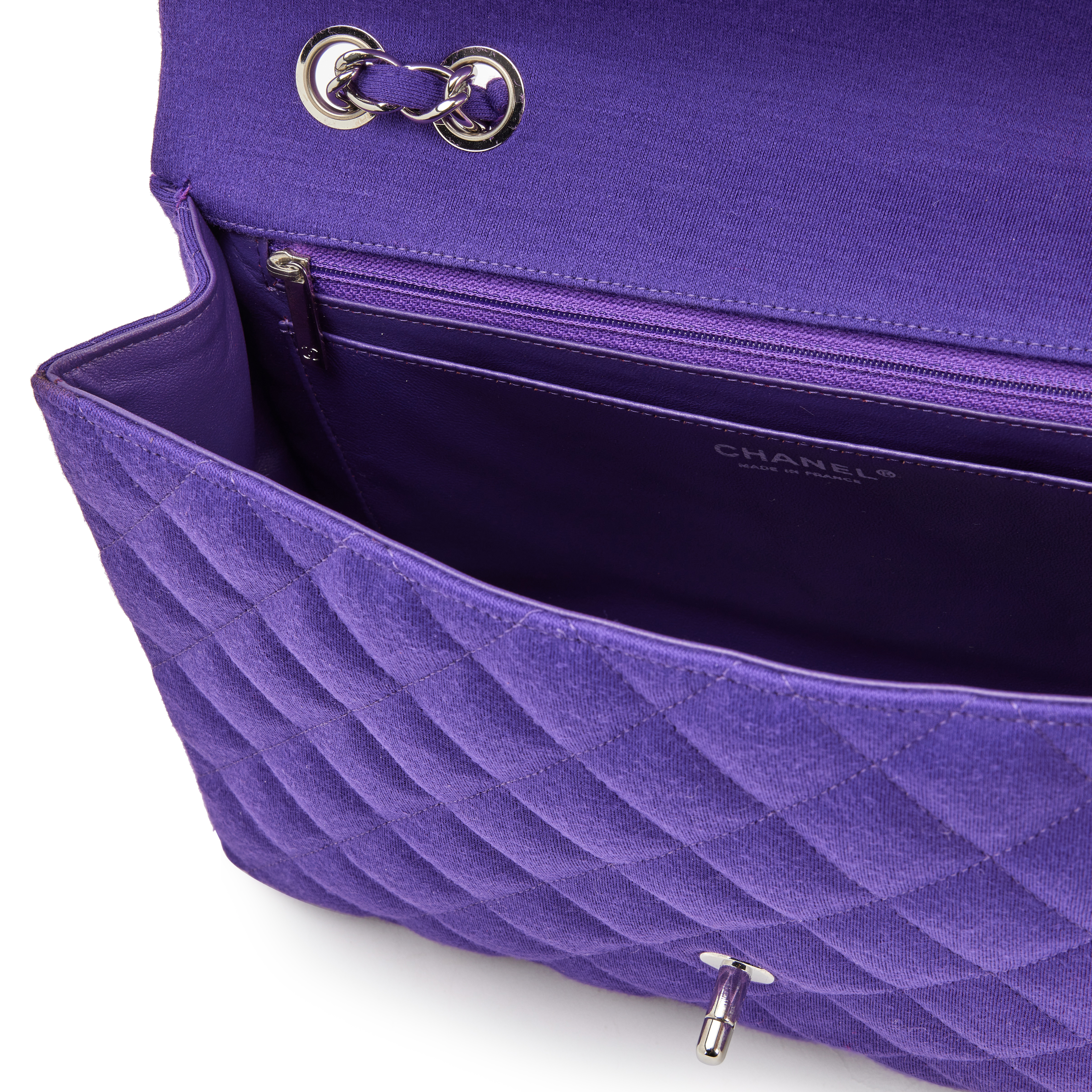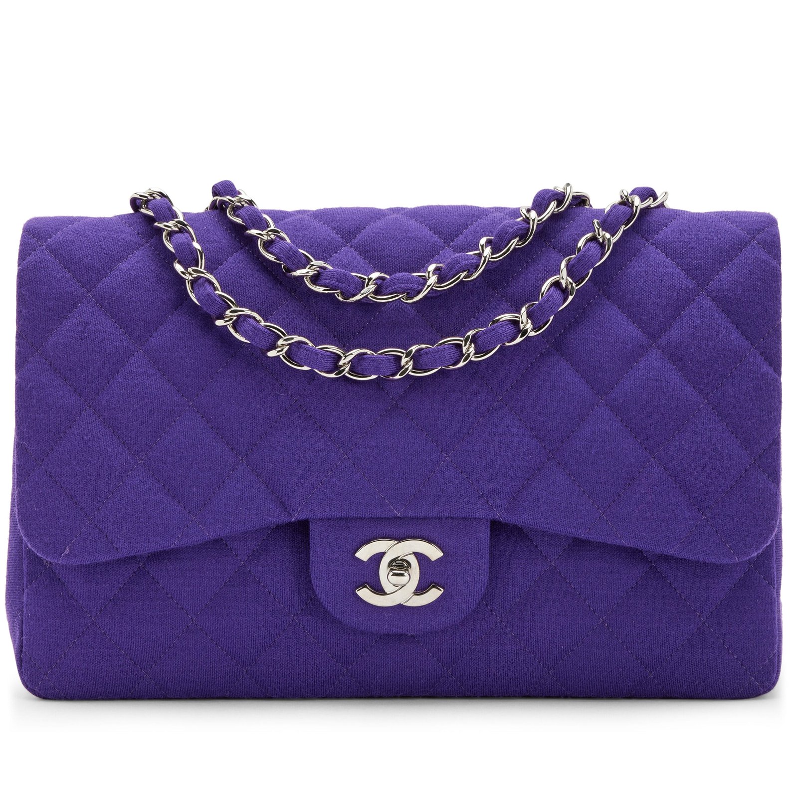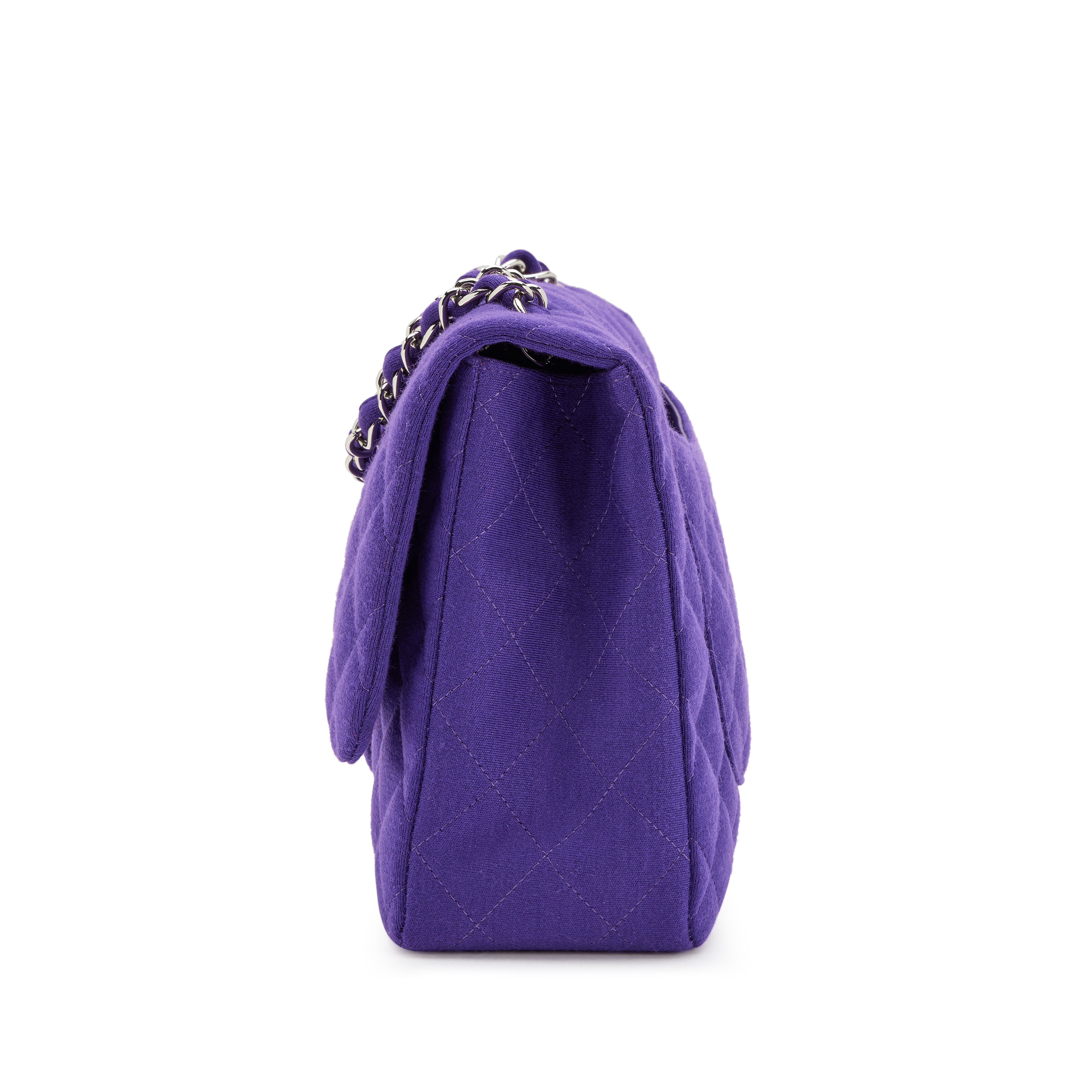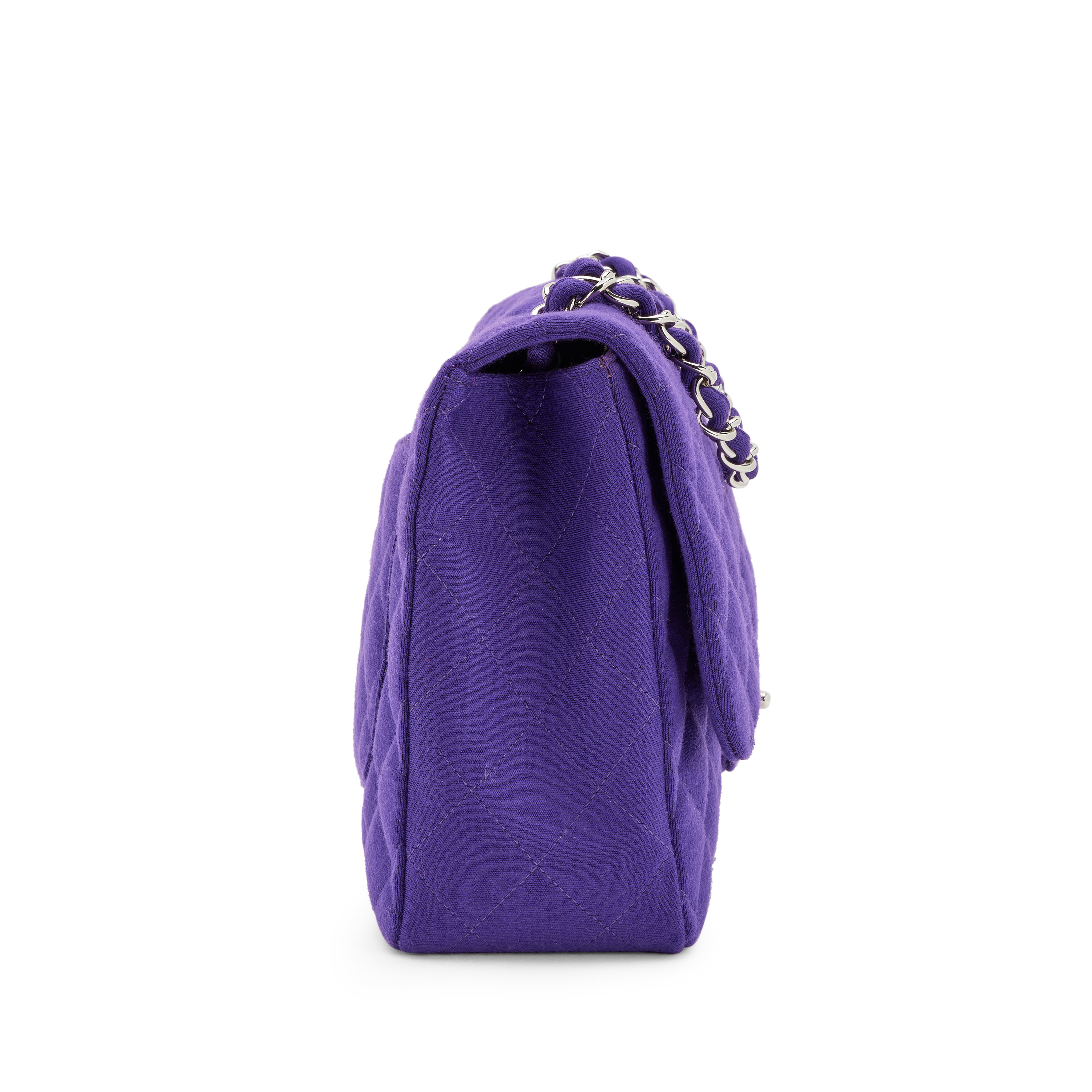 Chanel Purple Quilted Jersey Maxi Classic Single Flap Bag Silver Hardware, 2009-2010The interior is lined in a tonal leatherIncludes dust bagThis item is final sale and not eligible for return
