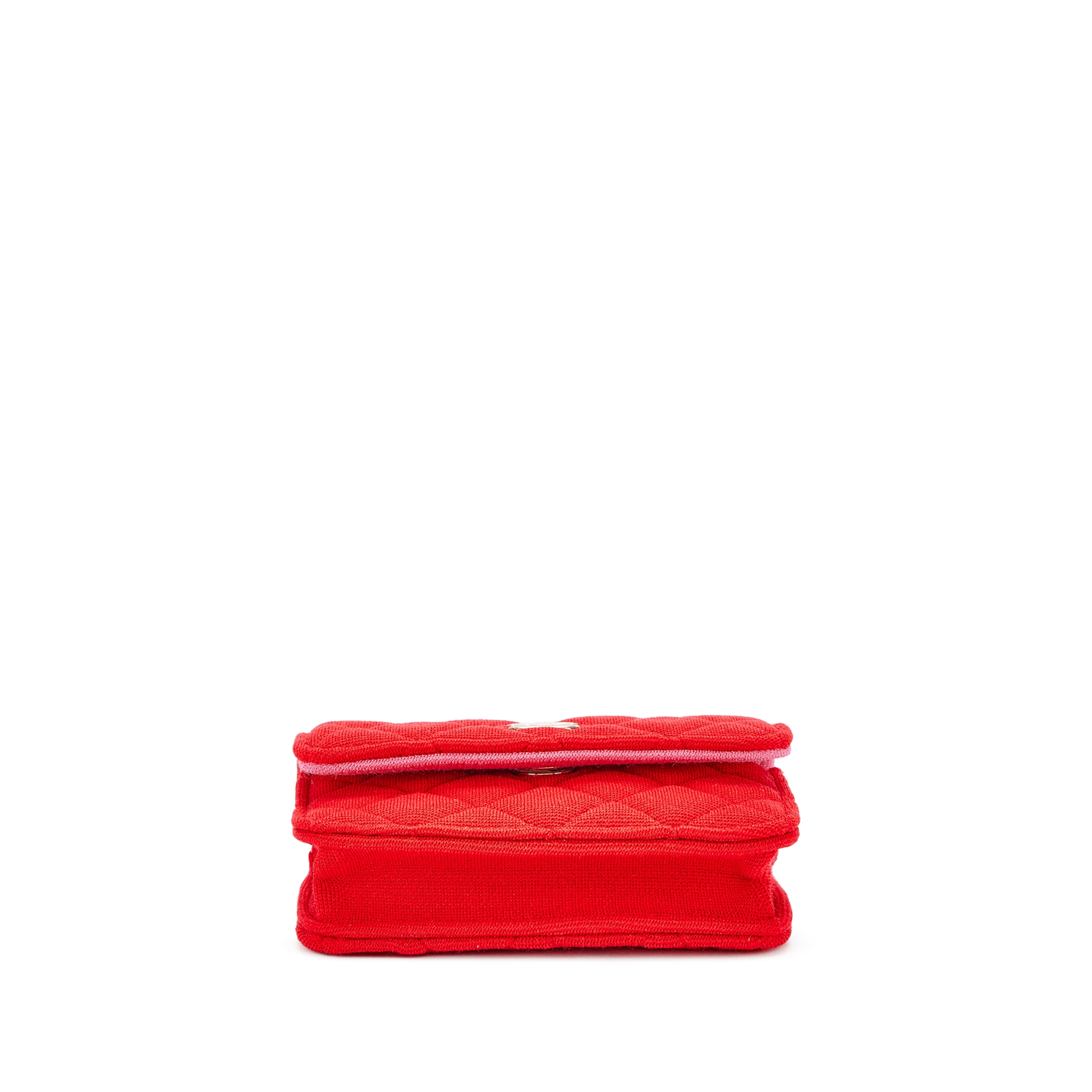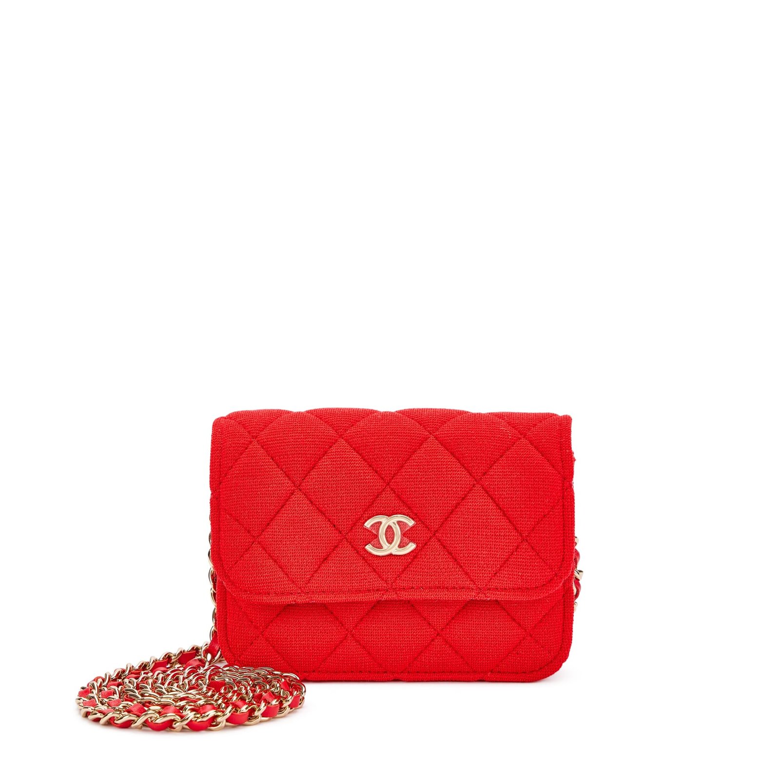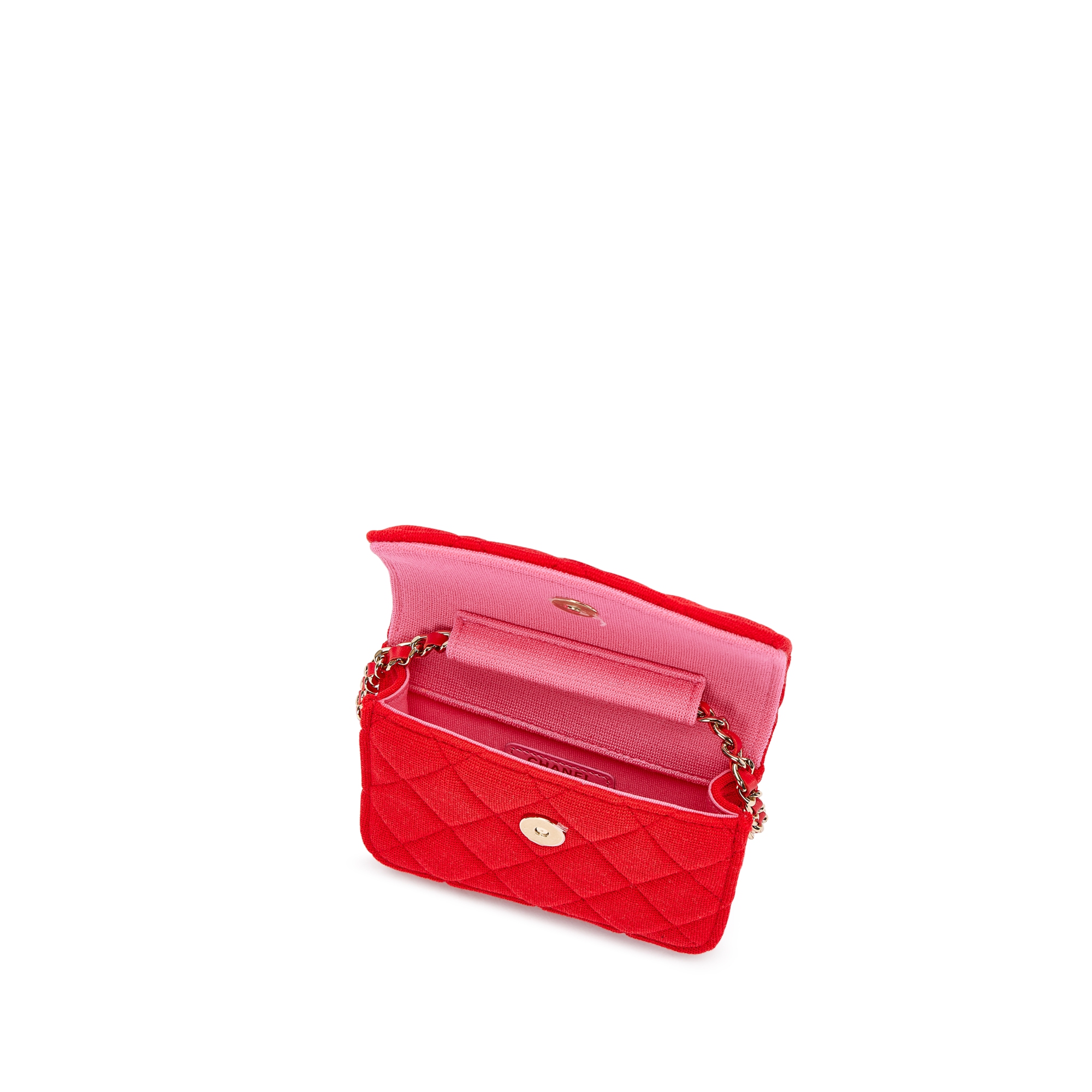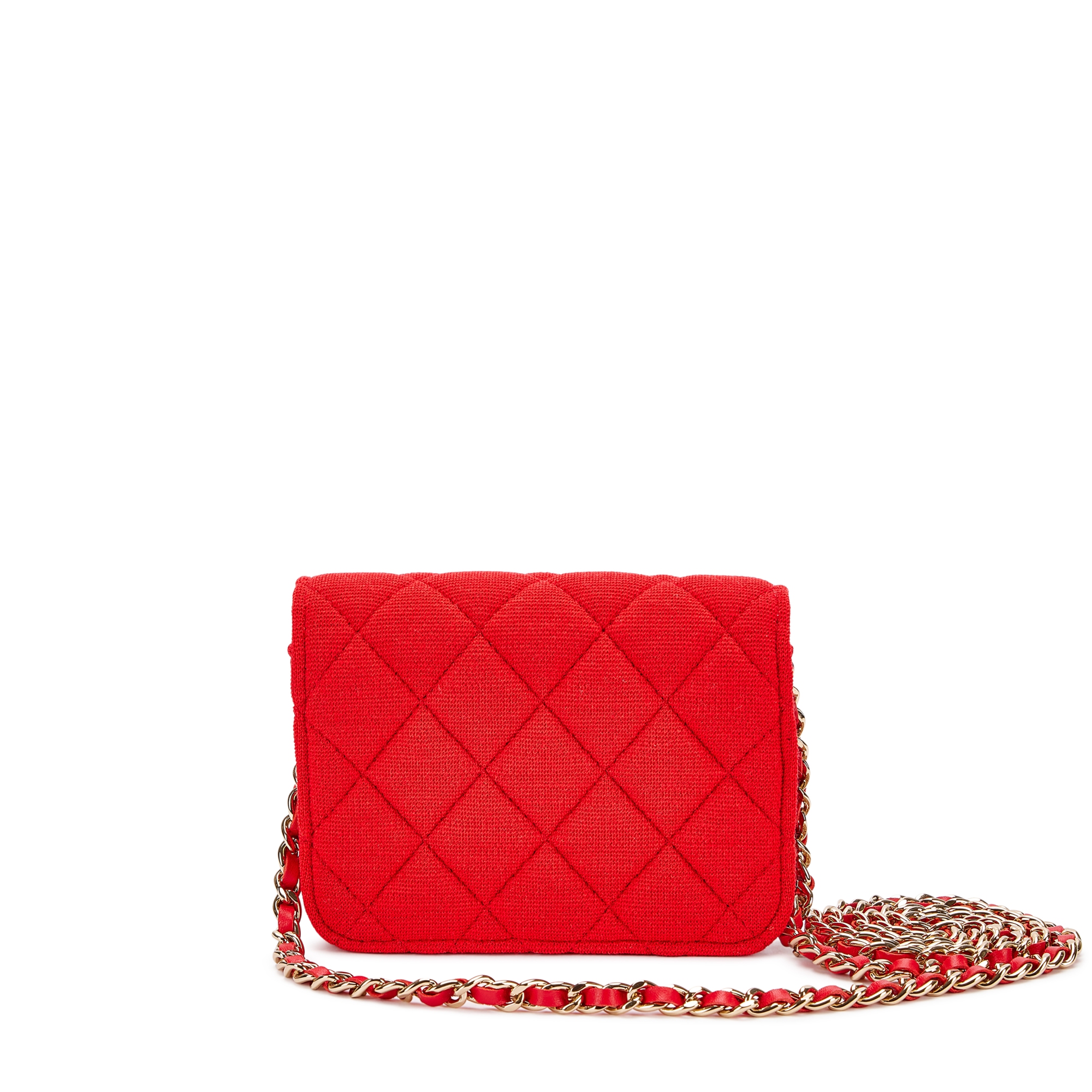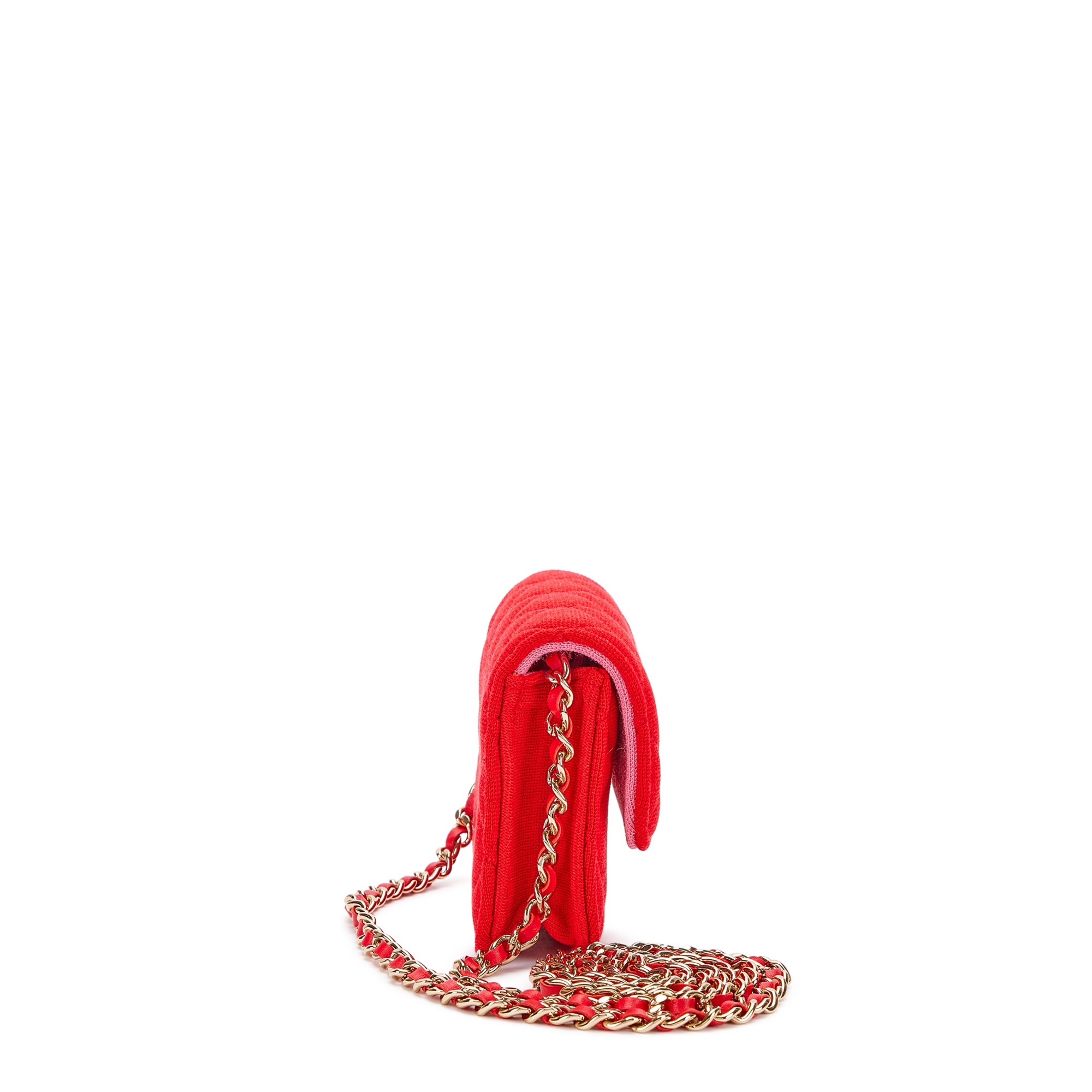 Chanel Red Quilted Fabric Micro Flap Bag Pale Gold HardwareThis item is complimentary from Chanel for VIPThe interior is lined with Pink textile materialIncludes dust bagThis item is final sale and not eligible for return