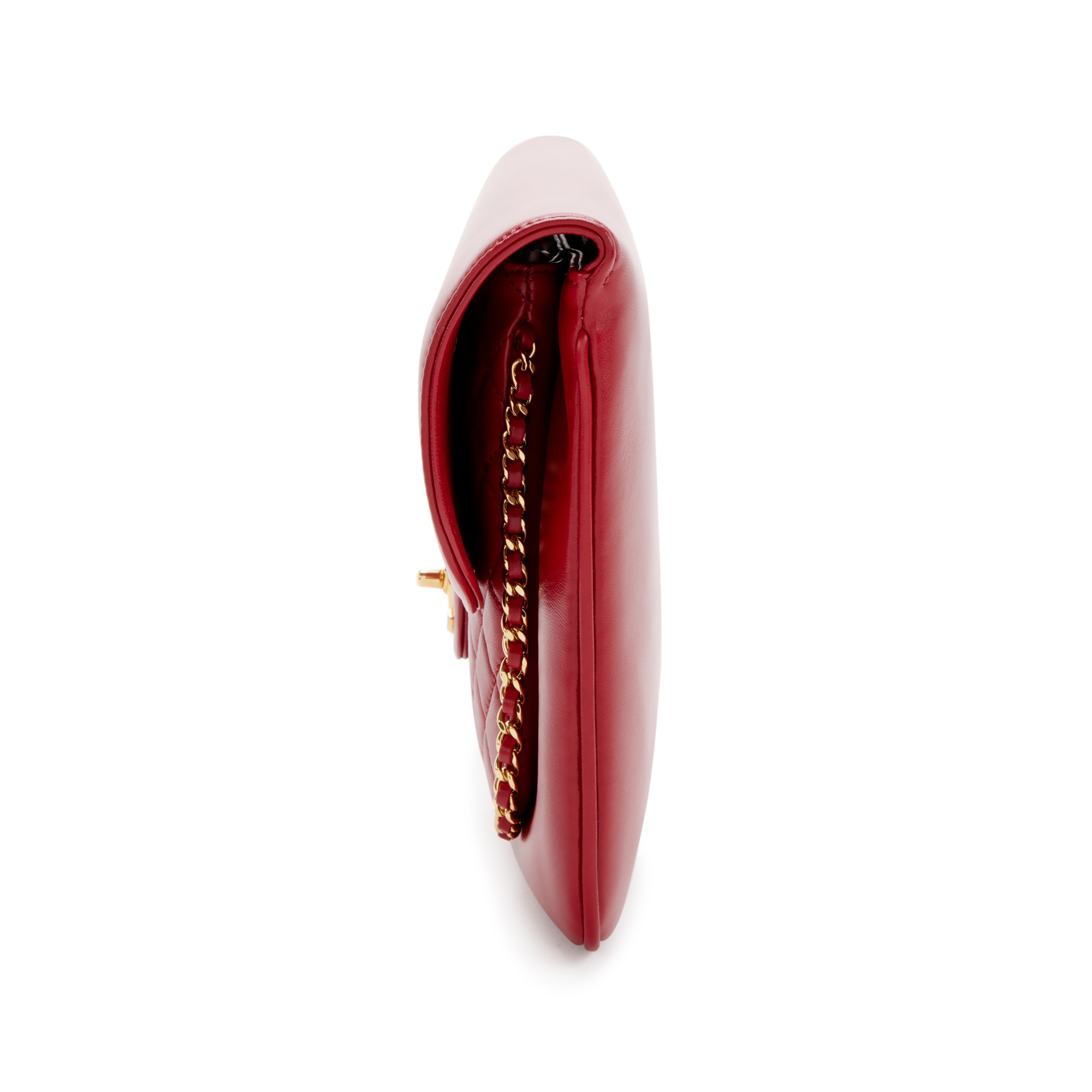 Chanel Red Quilted Lambskin CC Unchained Clutch Gold Hardware, 2017This bag is lined with red textile materialThis piece was featured during the Autumn 2017 collectionIncludes tag, felt, authenticity card, care booklet, dustbag and boxThis item is final sale and not eligible for return