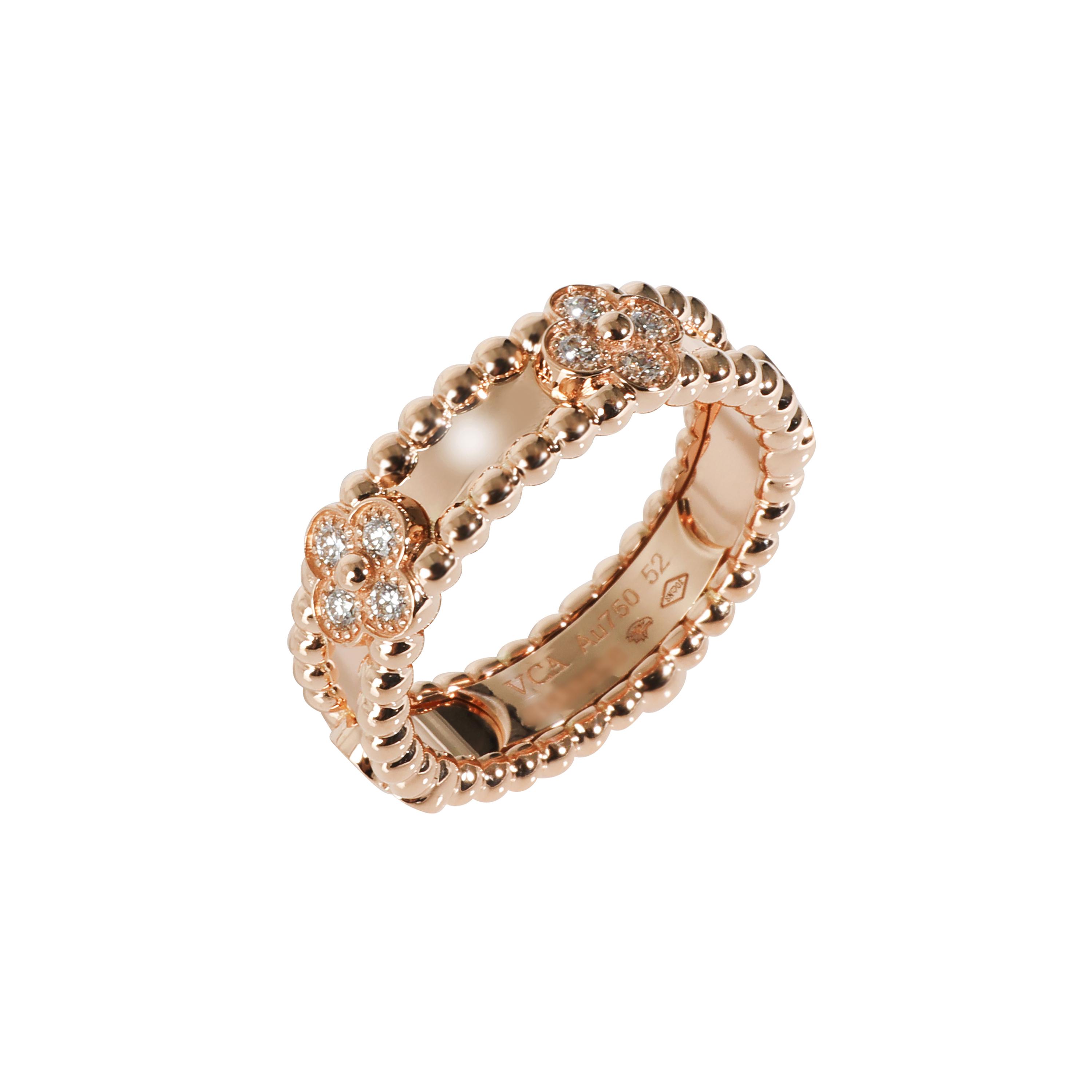 Of the iconic Perlée collection, composed of round brilliant cut diamonds arranged as clovers.Diamonds weighing a total of approximately 0.30 caratSigned VCA with serial number18 karat rose goldTotal weight 6.36 gramsSize 6VCA size 52Accompanied by a certificate of authenticity and receipt of authenticity