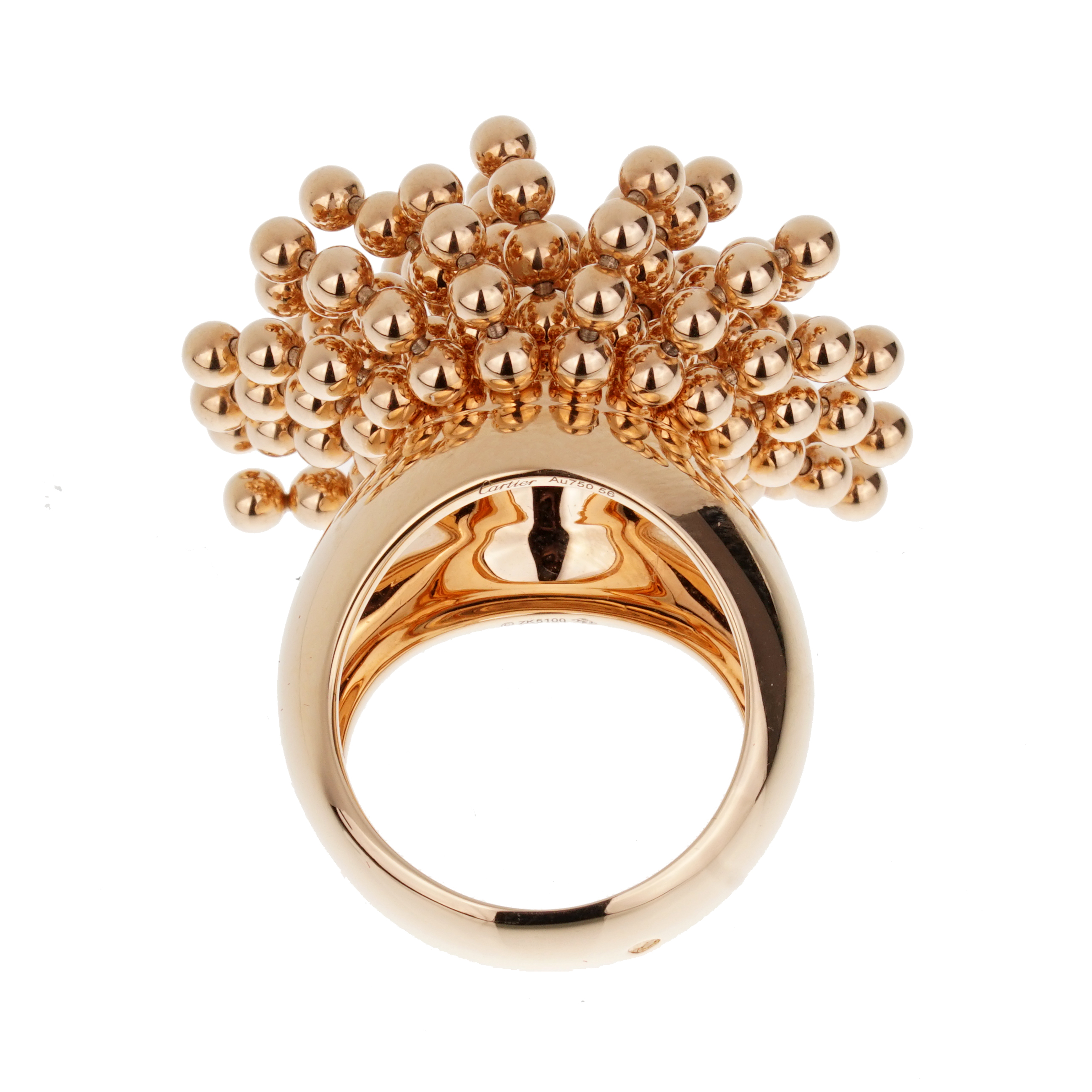 Of iconic Perruque design, featuring a tassel of beads.Signed Cartier with serial numbersFrench marks18 karat rose goldTotal weight 30.10 gramsSize 56, US size 7½