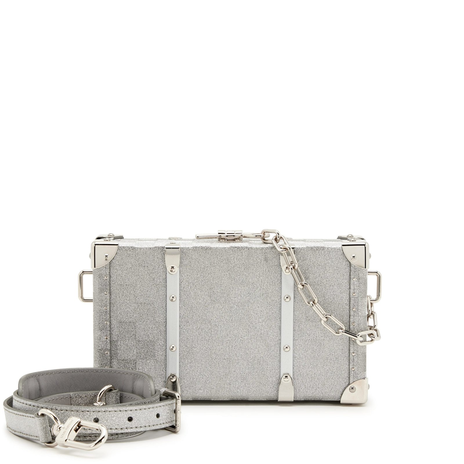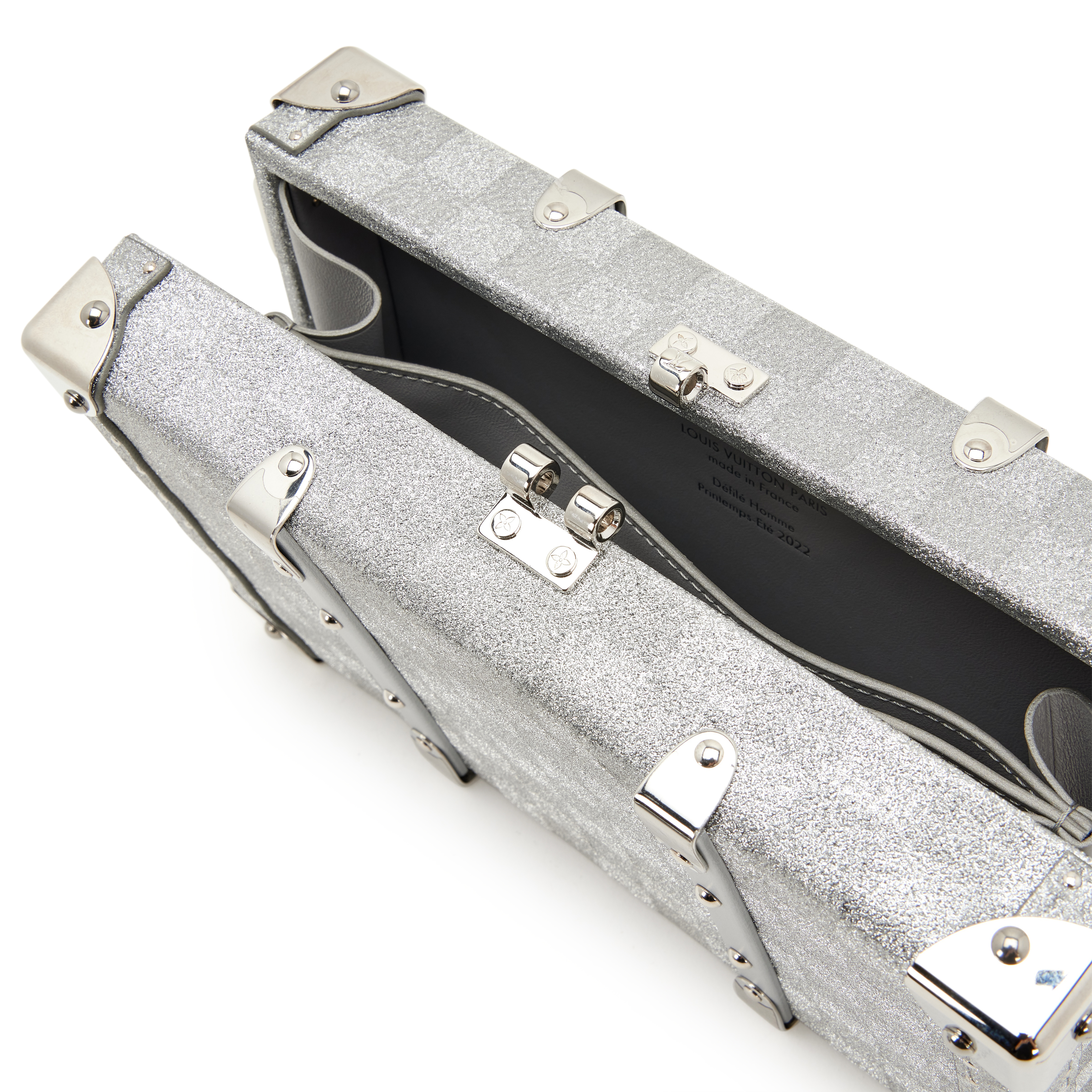 Louis Vuitton Silver Glitter Aluminum Monogram Briefcase Trunk Silver Hardware, 2022The interior is lined in a grey leatherIncludes shoulder strap, luggage tag, shoulder strap dust bag, dust bag, and boxThis item is final sale and not eligible for return