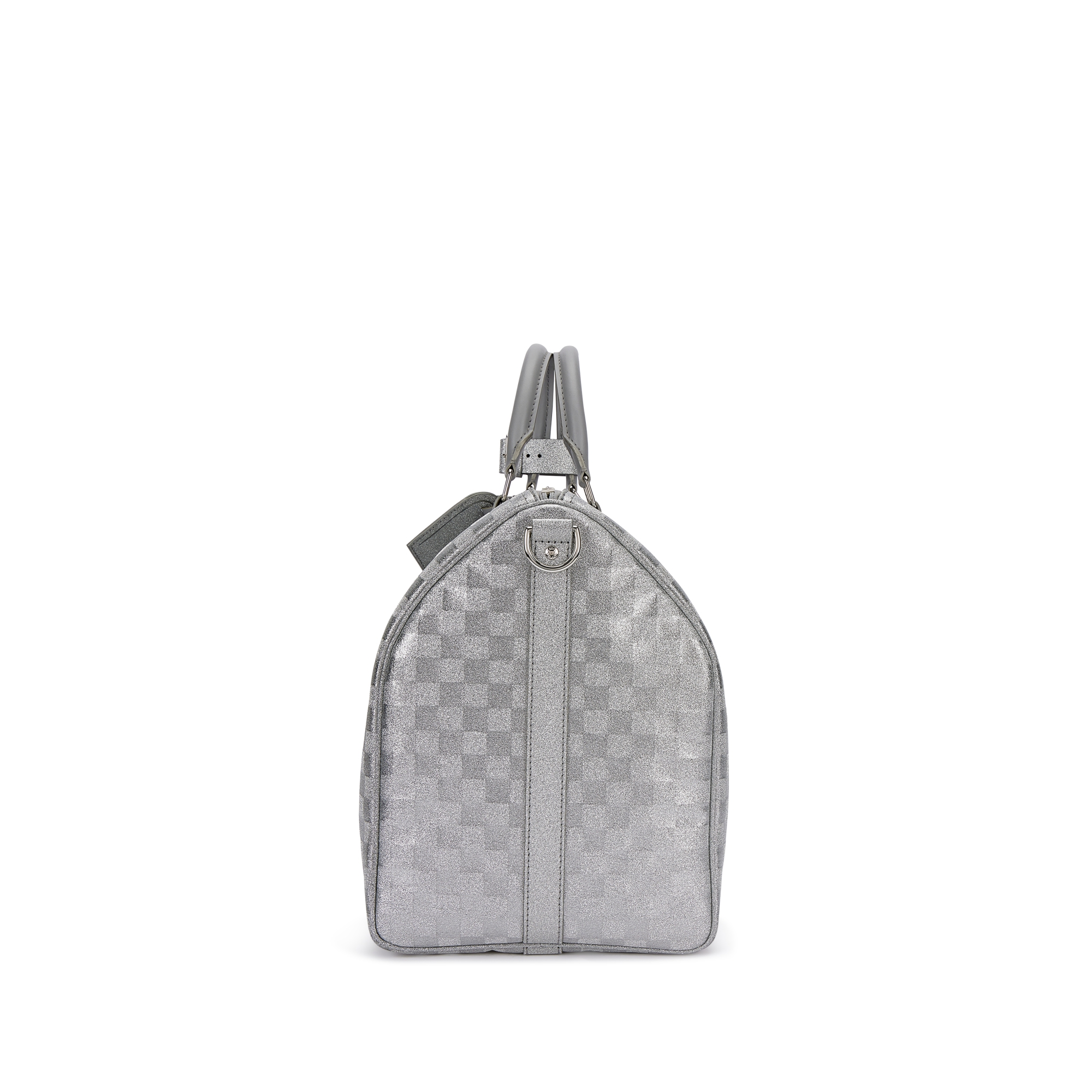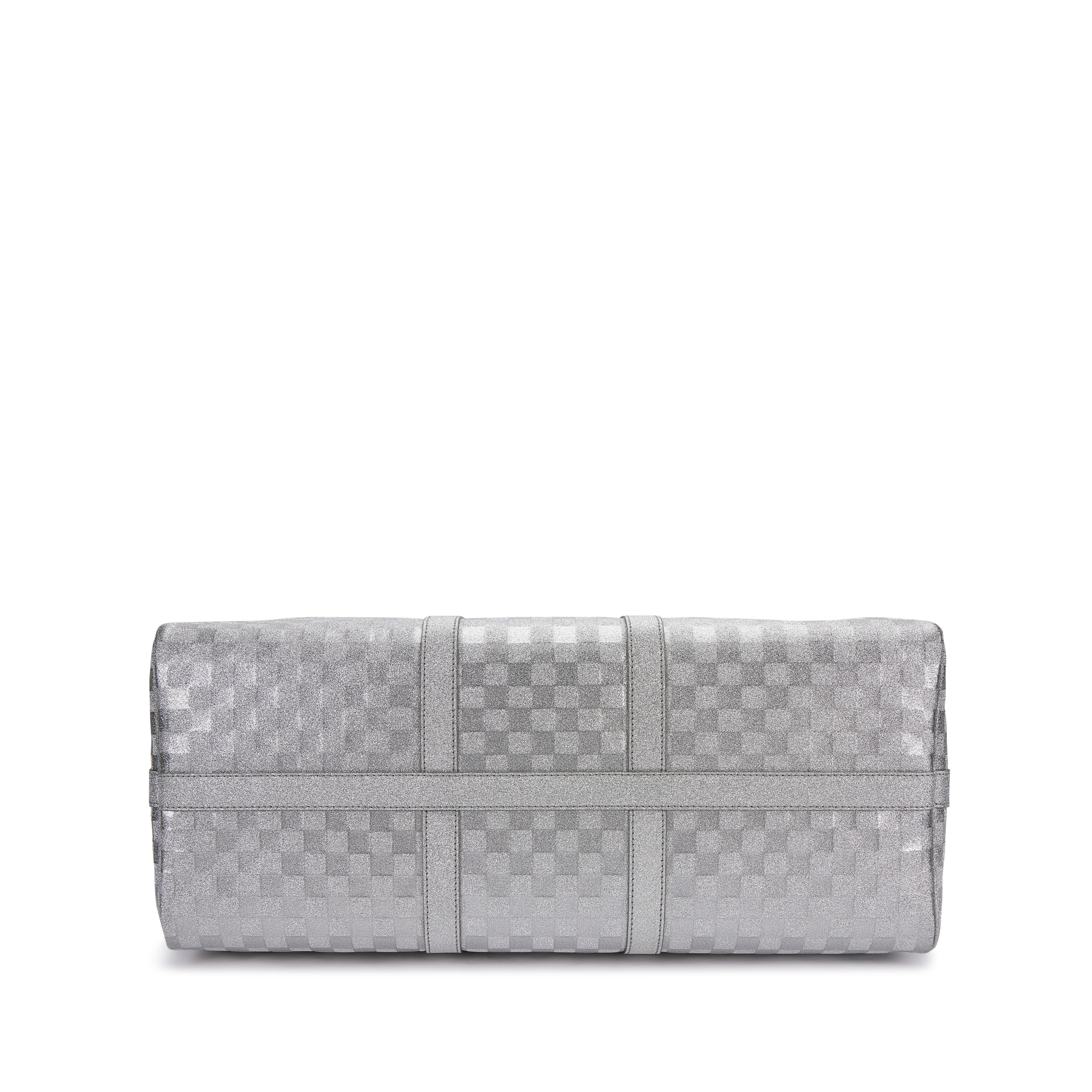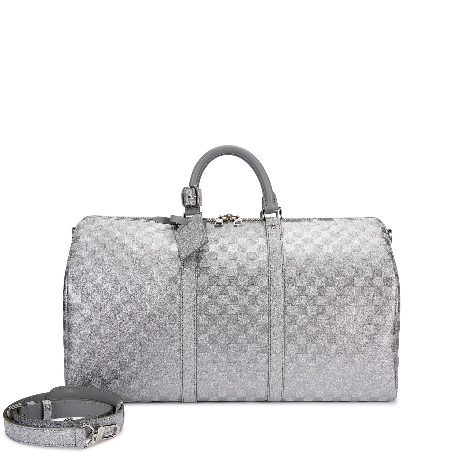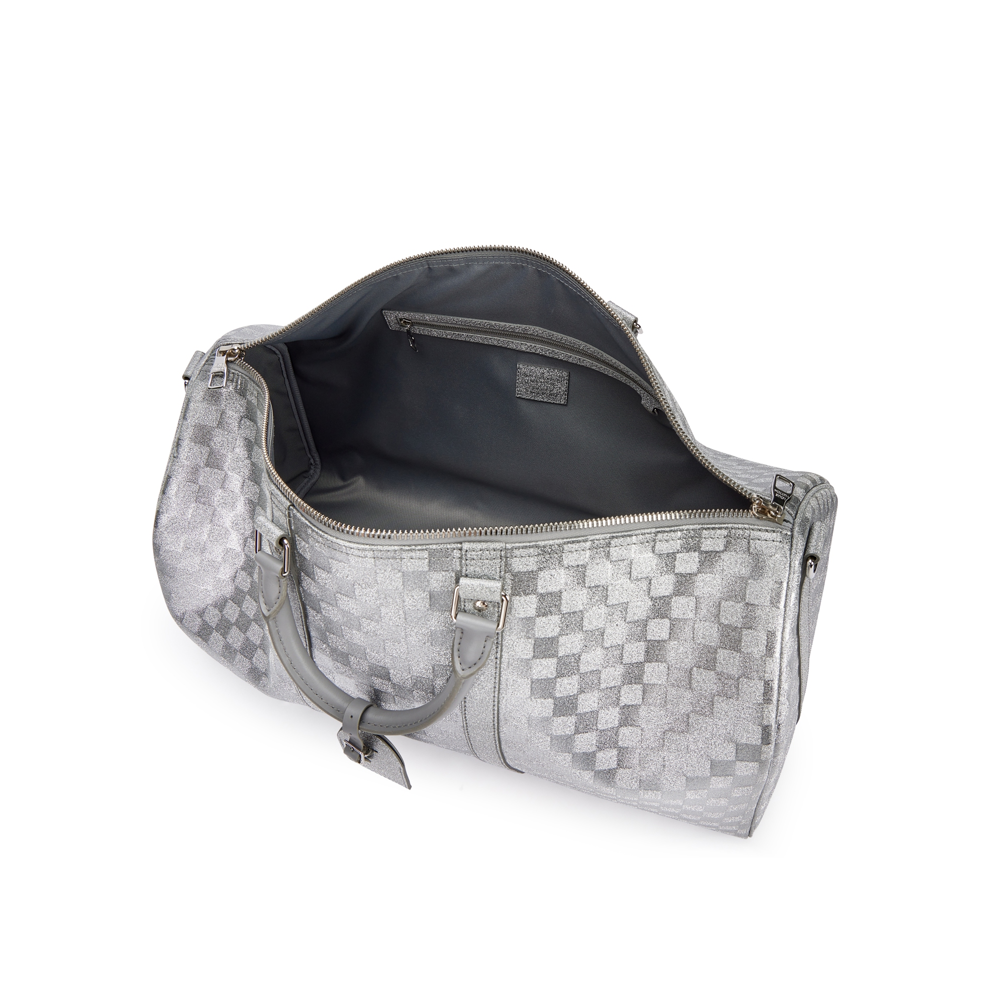 Louis Vuitton Silver Glitter Damier Vachetta Keepall 50 Bandoulière Silver HardwareThis item is a limited edition of LV x Virgil Abloh collectionThe interior is lined in a Grey textile materialIncludes strap, lock, keys, luggage tag, shoulder strap dust bag, dust bag and boxThis item is final sale and not eligible for return