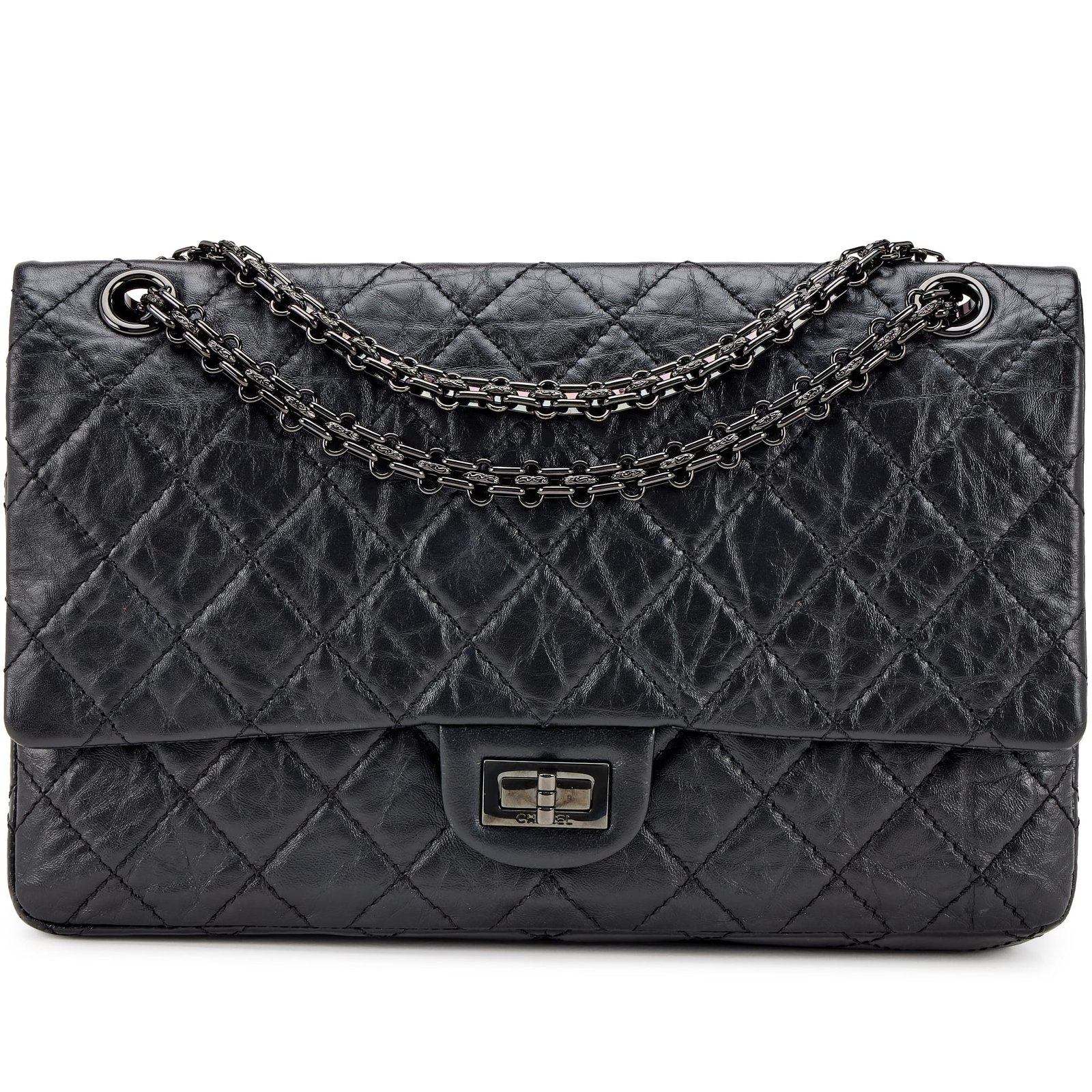 Chanel So Black Quilted Calfskin 2.55 Large Reissue 226 Double Flap Ruthenium Hardware, 2019The interior is lined in a tonal leatherIncludes authenticity card, information booklet, microfiber dust cloth, dust bag, and boxThis item is final sale and not eligible for return