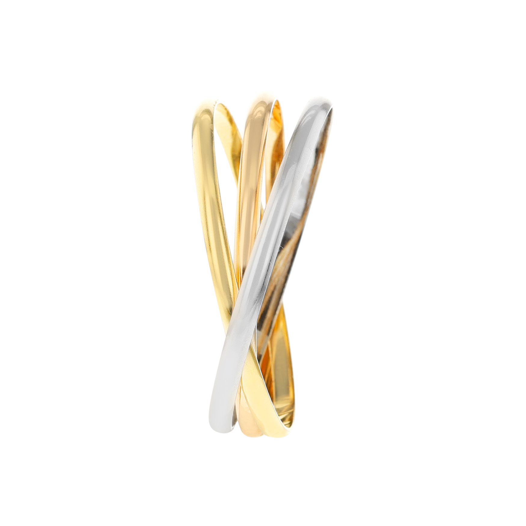 Of iconic Trinity collection, featuring 3 interlocked bangle bracelets in yellow gold, rose gold and white gold.Signed Cartier, with serial numbersStamped MD 75018 karat yellow gold, rose gold and white goldTotal weight 68.70 gramsInner circumference 7⅞ inches