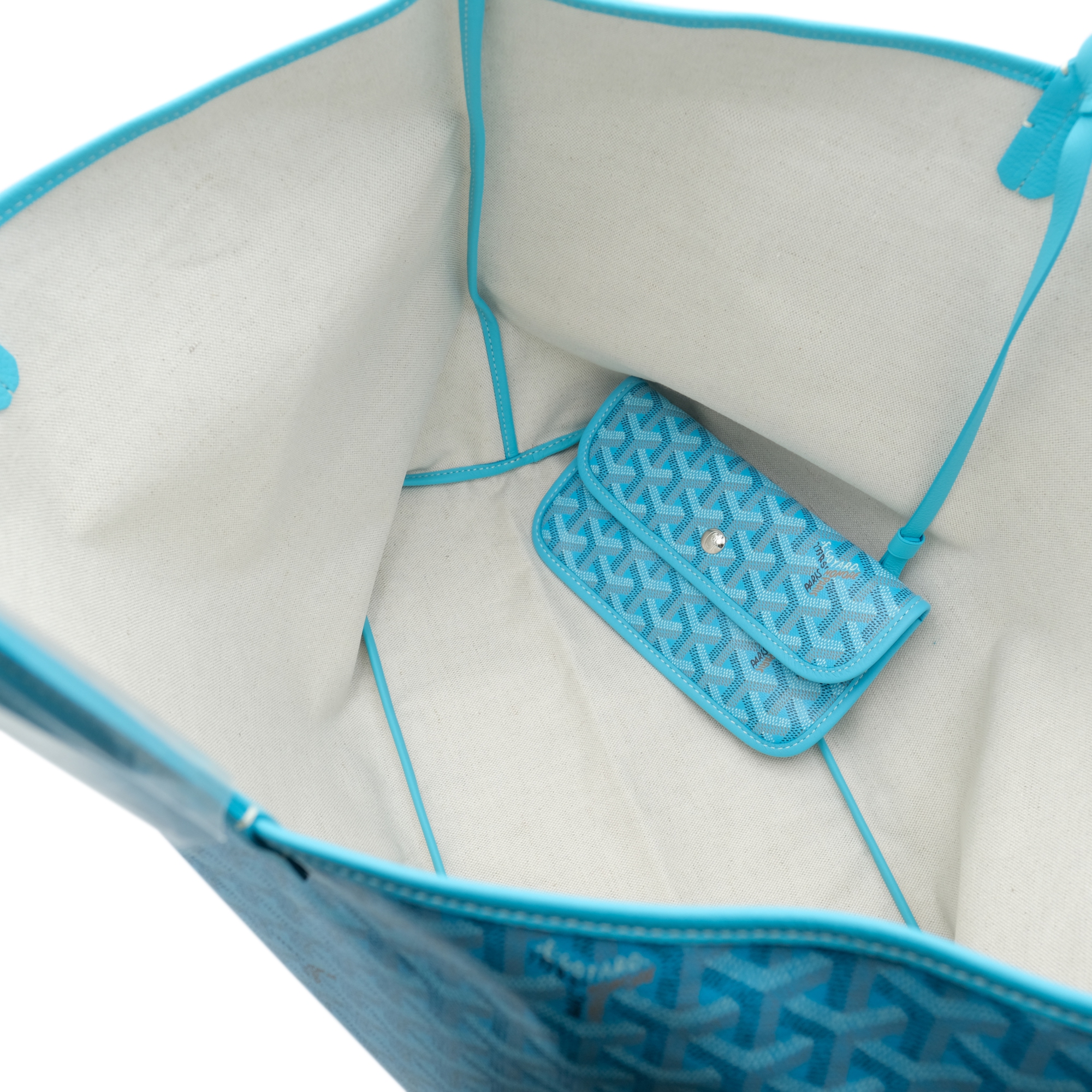 Goyard Turquoise Goyardine Canvas and Chevroches Calfskin Saint Louis GM Bag with Balise Beach Towel, 2024This is a limited edition turquoise blue colour collectionThe interior is unlinedIncludes beach towel, detachable pouch, care booklet and dust bagThis item is final sale and not eligible for return
