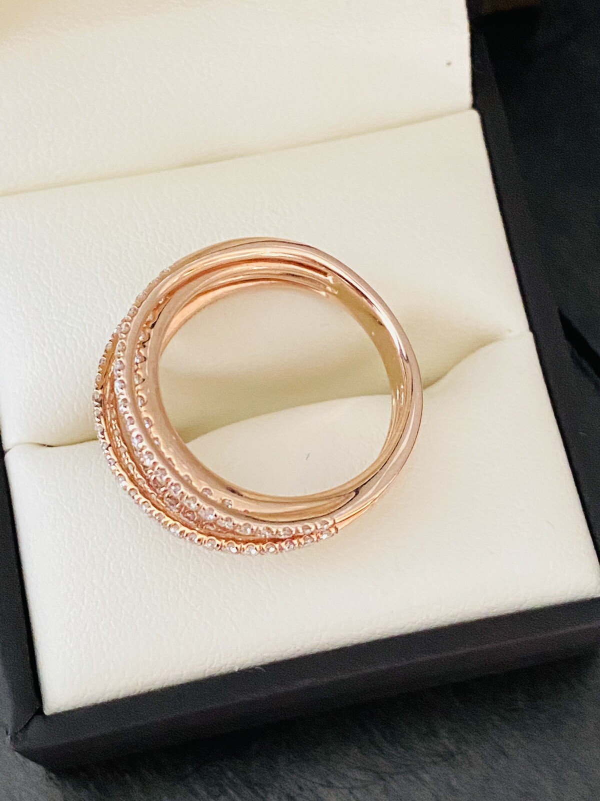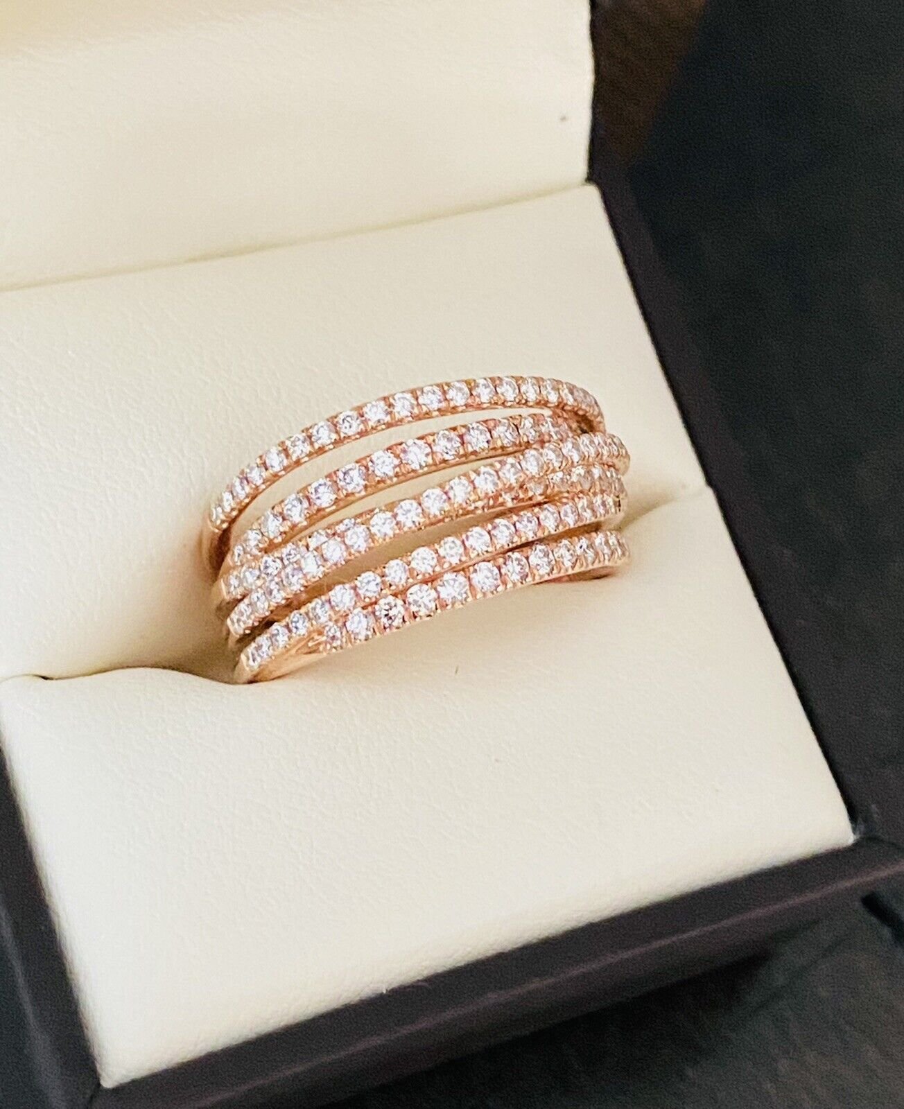 Unworn Gabriel Co 14k Rose Gold 1.02 Cts Diamond 6 Ring Crossover.