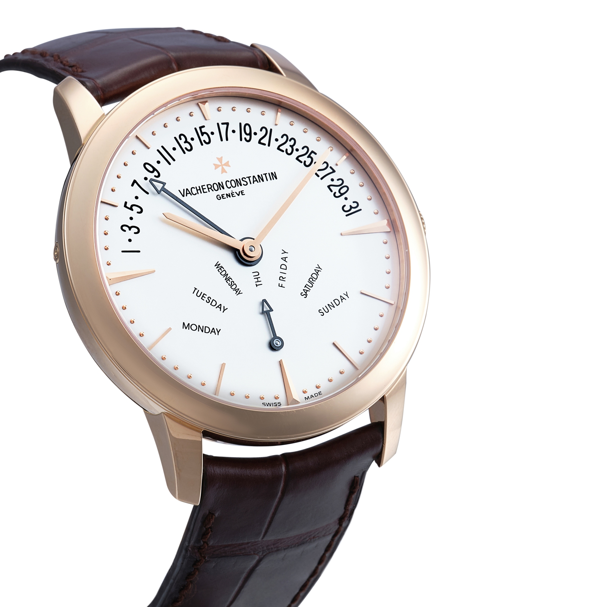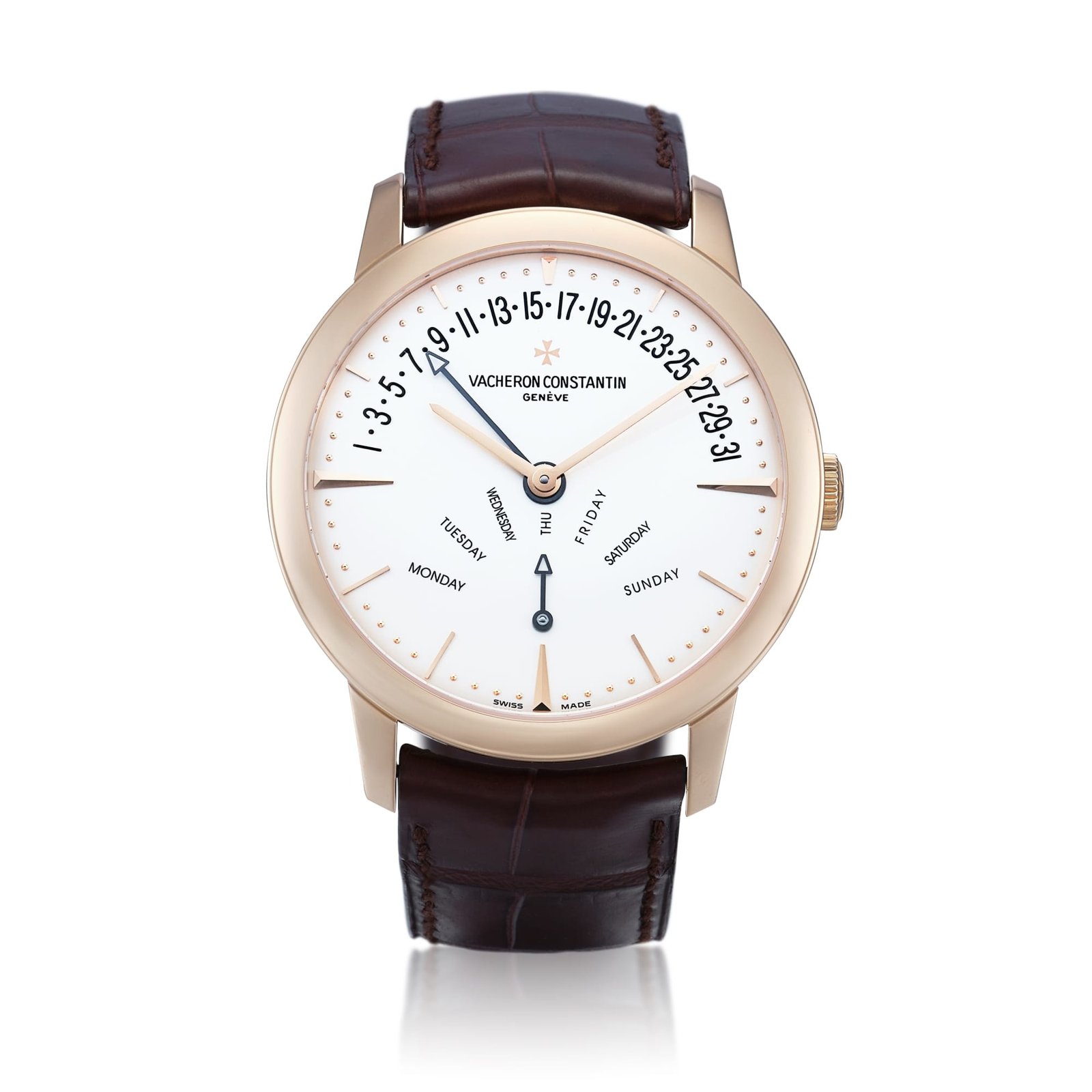 The Patrimony Contemporaine line is a powerful expression of modern horology. The case is a 42.5mm diameter and crafted from pink gold and the watch displays the day and date via two retrograde indicators on the dial. The movement is powered by the automatic caliber 2460.