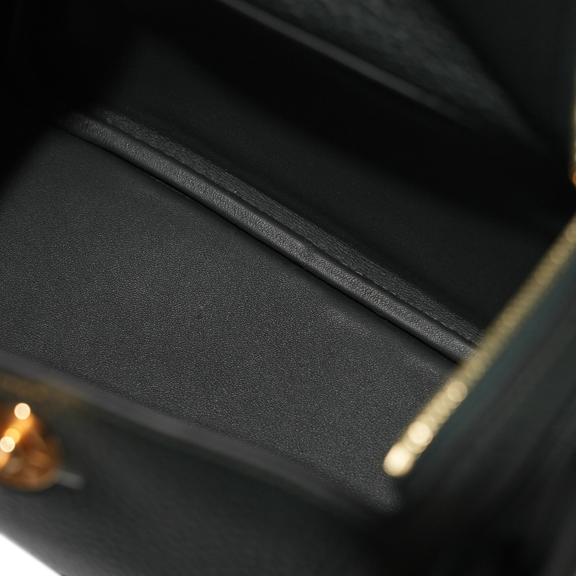 The interior is lined with Vert Fonce leather and has one pocket on each side.