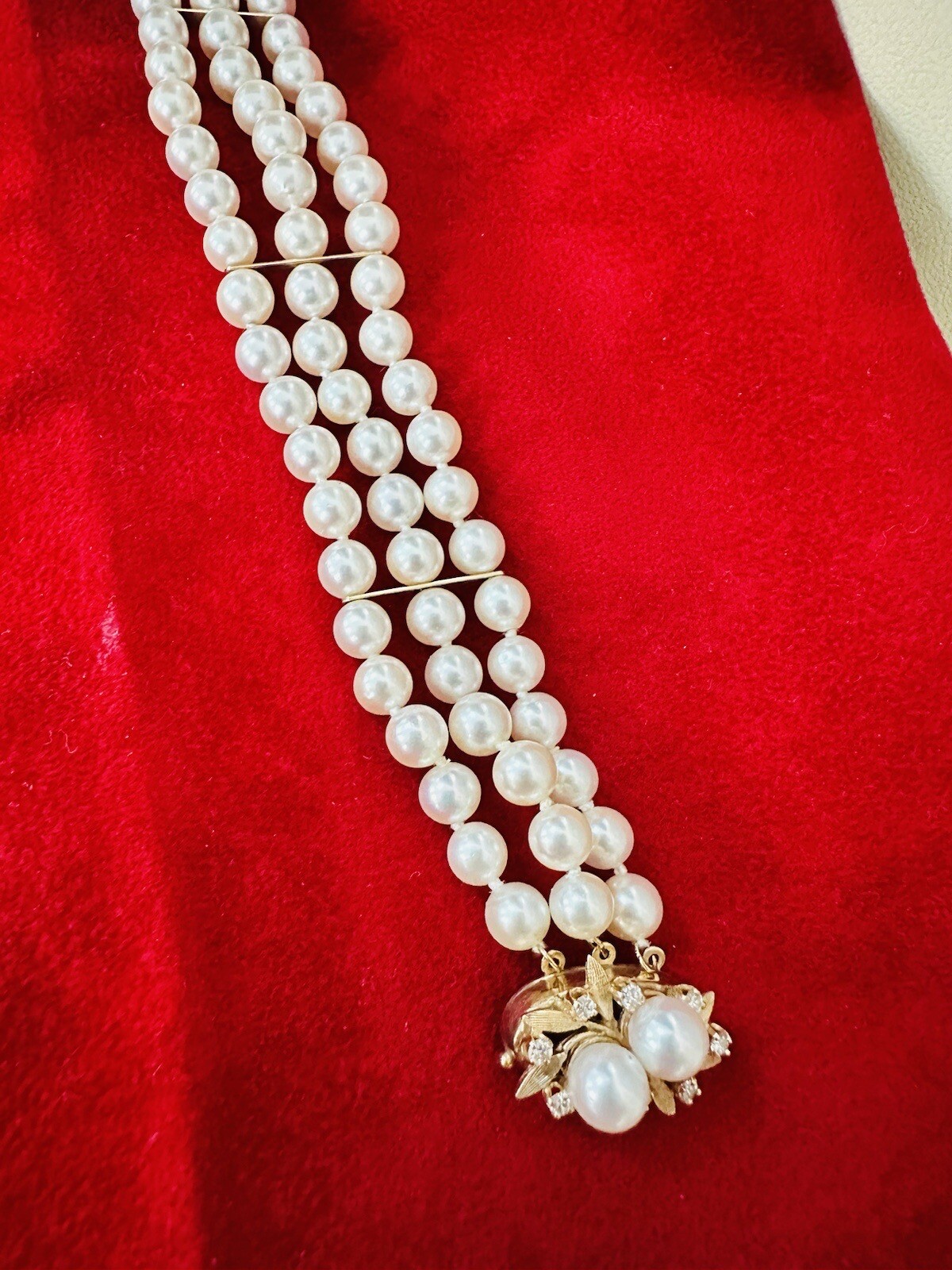 Vintage Estate 14k Gold & Diamond three-strand pearl Bracelet