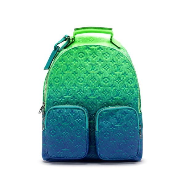 Louis Vuitton Virgil Abloh Blue and Neon Green Gradient Illusion Taurillon Multipocket Backpack Silver Hardware, 2022The interior is lined in a blue textile materialIncludes luggage tag, dust bag, and boxThis item is final sale and not eligible for return