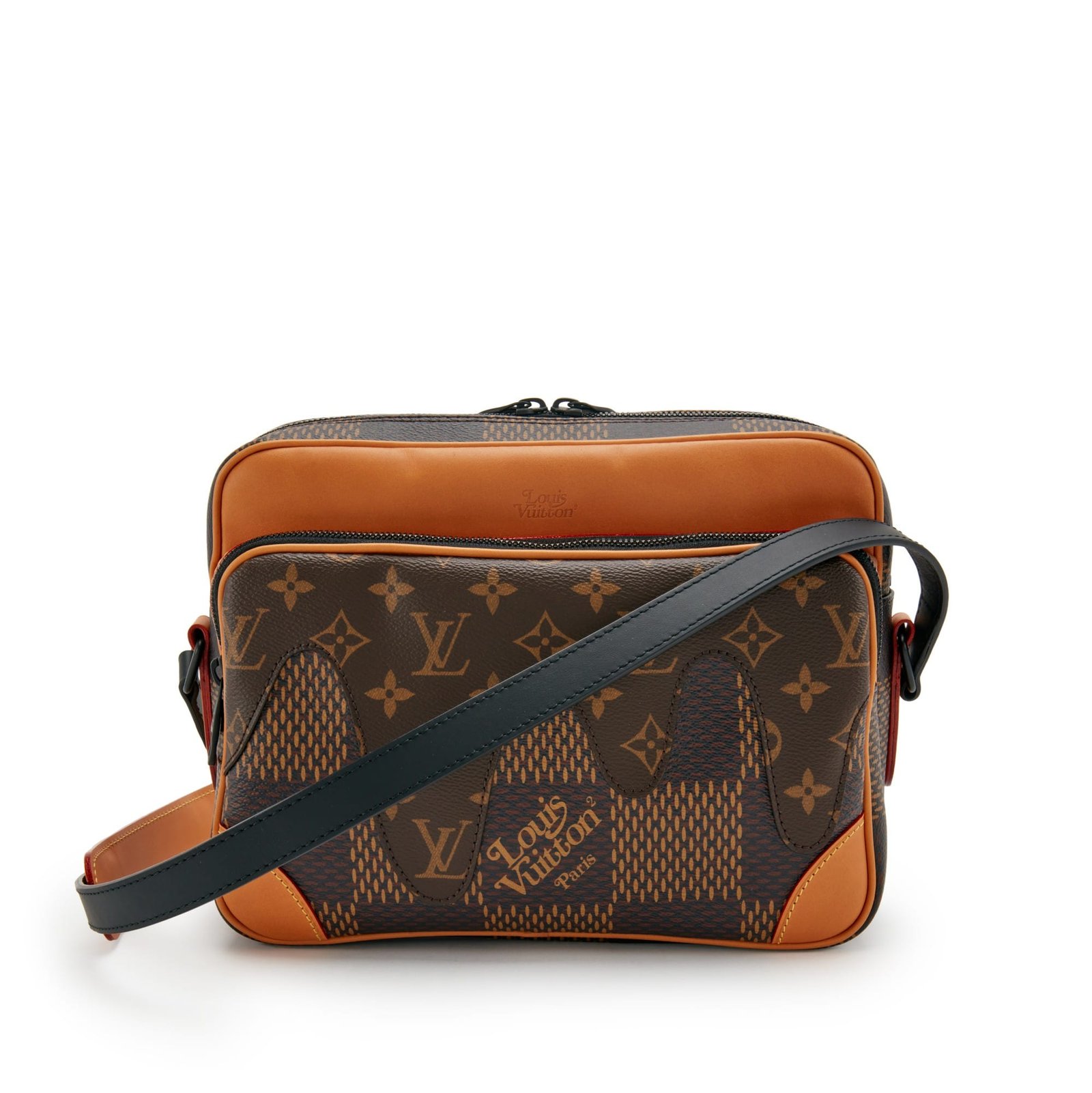 Louis Vuitton Virgil Abloh x NIGO Brown Giant Damier Ebene & Drip Monogram Coated Canvas Nil Messenger Gold Hardware, 2021This bag is lined with black fabricThis piece was featured during the collaboration with Japanese artist NigoIncludes ribbon, care booklet, dustbag and boxThis item is final sale and not eligible for return