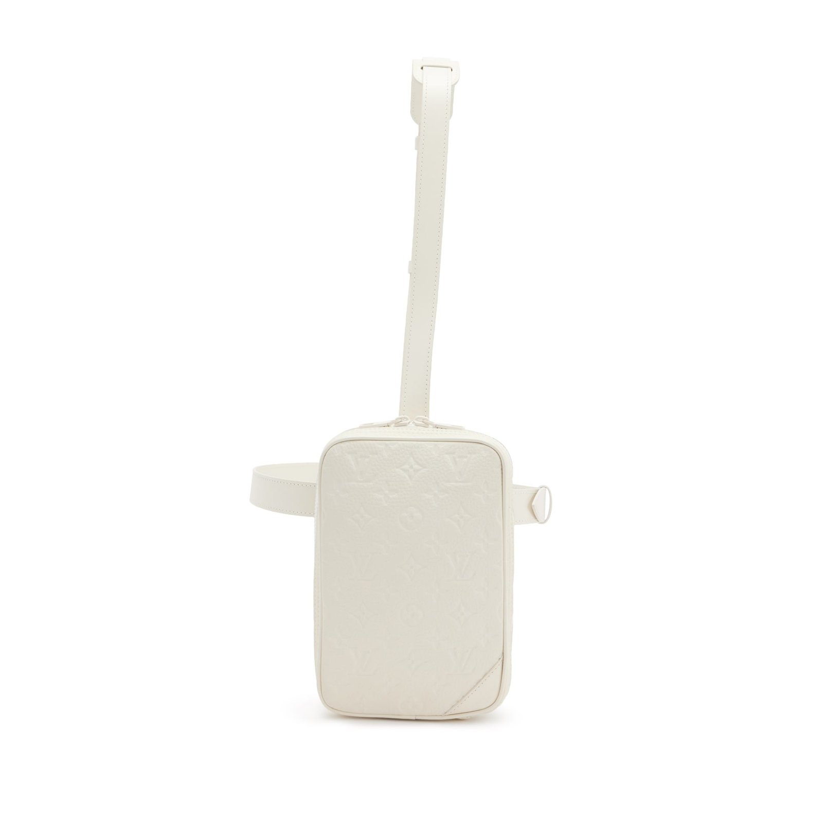 Louis Vuitton Virgil Abloh White Monogram Empreinte Leather Utility Side Bag White Hardware, 2019This bag is lined with black textile materialThis piece was featured during the Spring 2019 men’s runway collectionIncludes straps, dustbag and boxThis item is final sale and not eligible for return