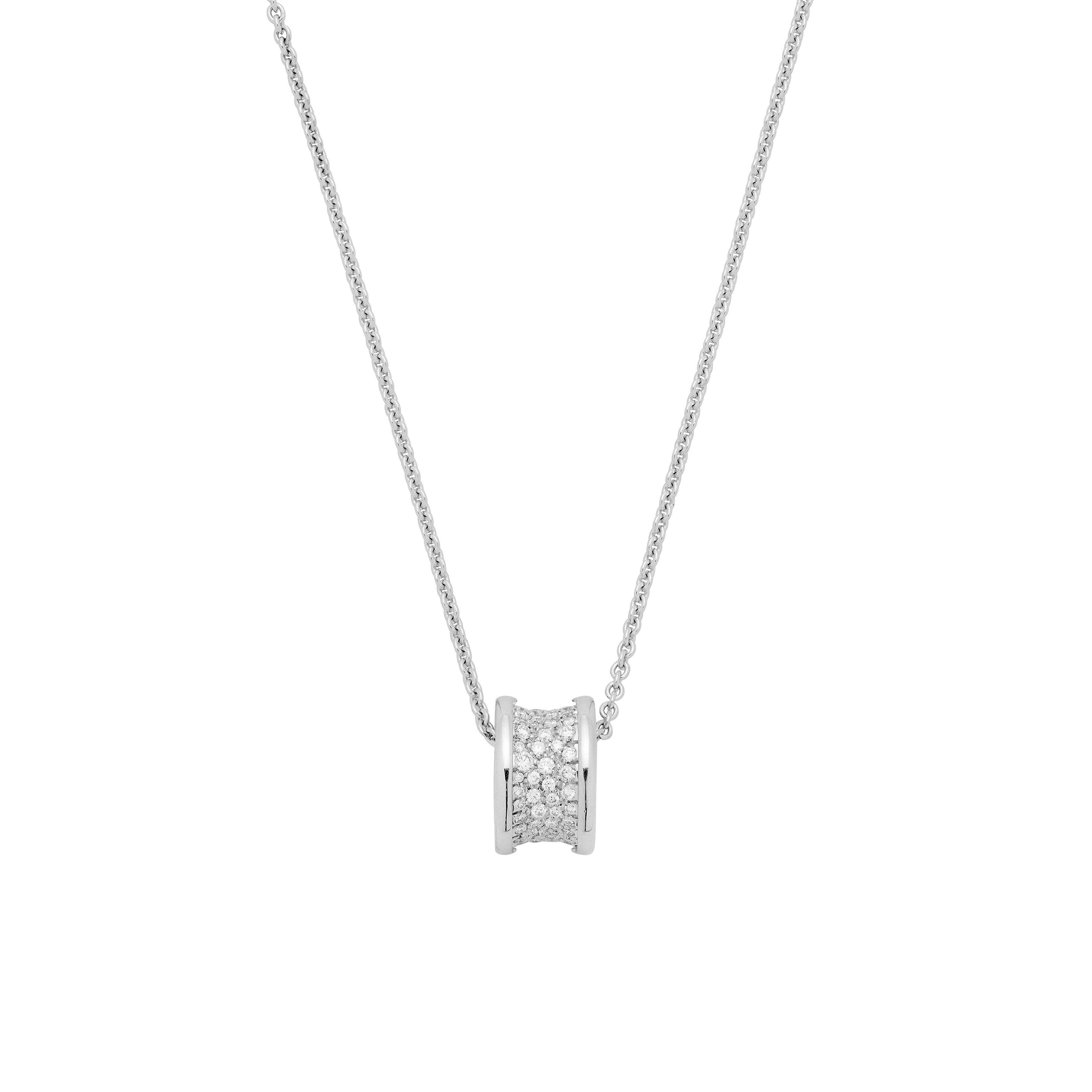 Of the B.zero1 collection, composed of round brilliant cut diamonds.Diamonds weighing a total of 0.87 caratsSigned BvlgariItalian registry mark18 karat white goldTotal weight 15.53 gramsLength 15 – 18 inches; Pendant diameter ½ inch