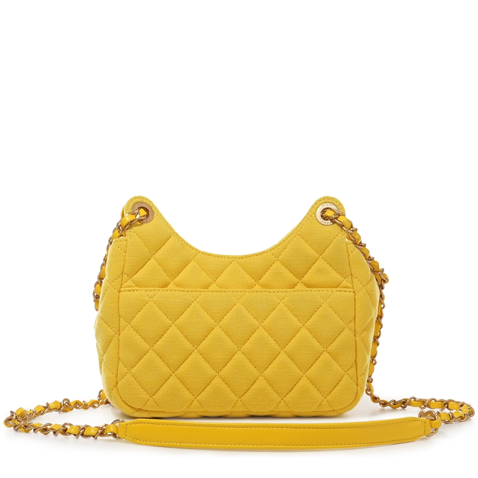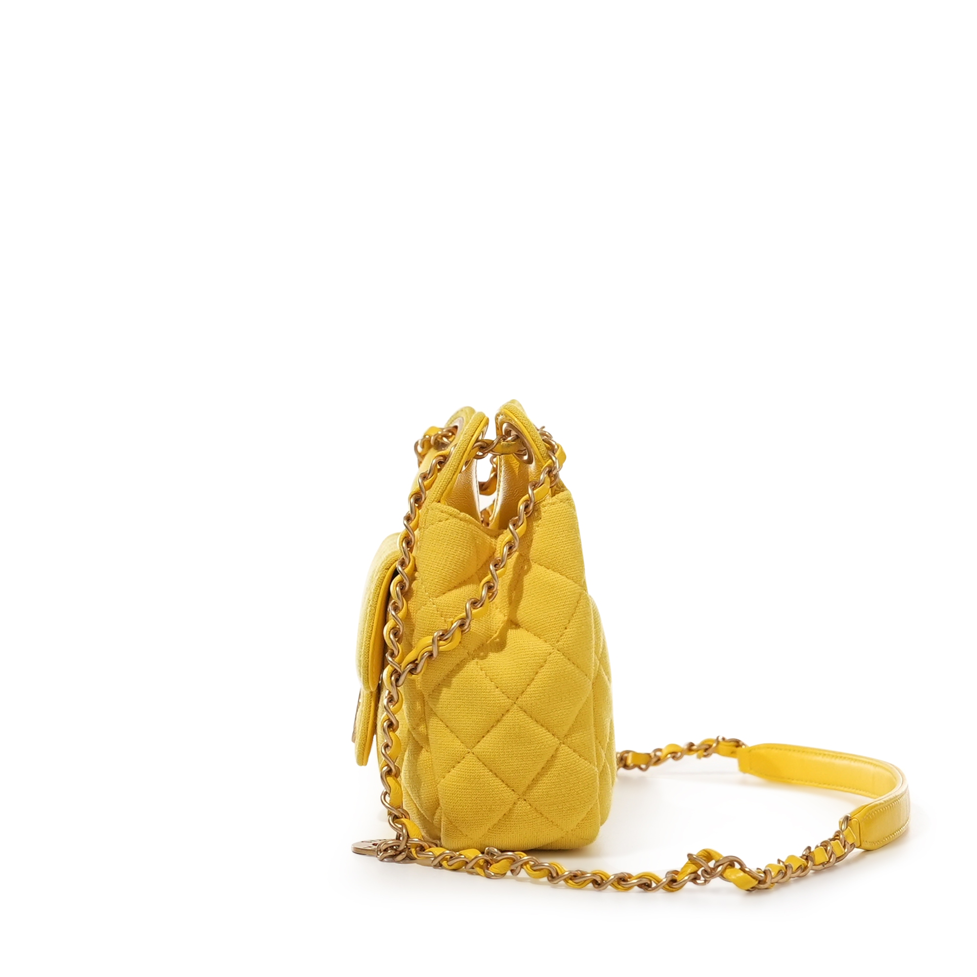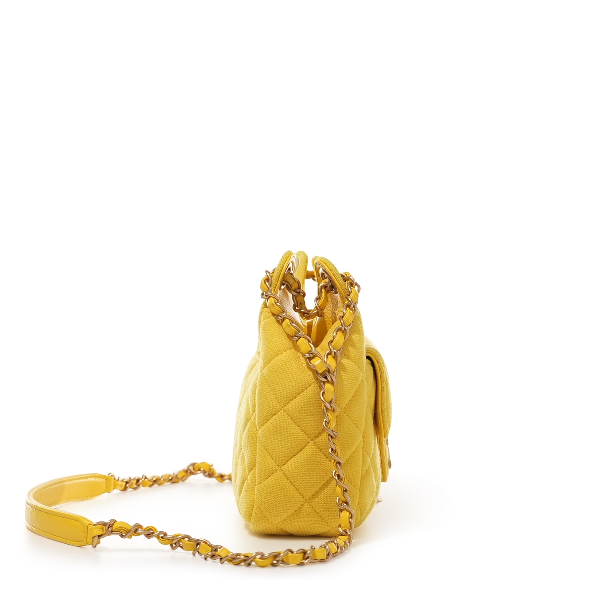 Chanel Yellow Quilted Canvas Small Hobo Bag Brushed Gold HardwareThe interior is lined with Green textile materialIncludes dust bag and boxThis item is final sale and not eligible for return